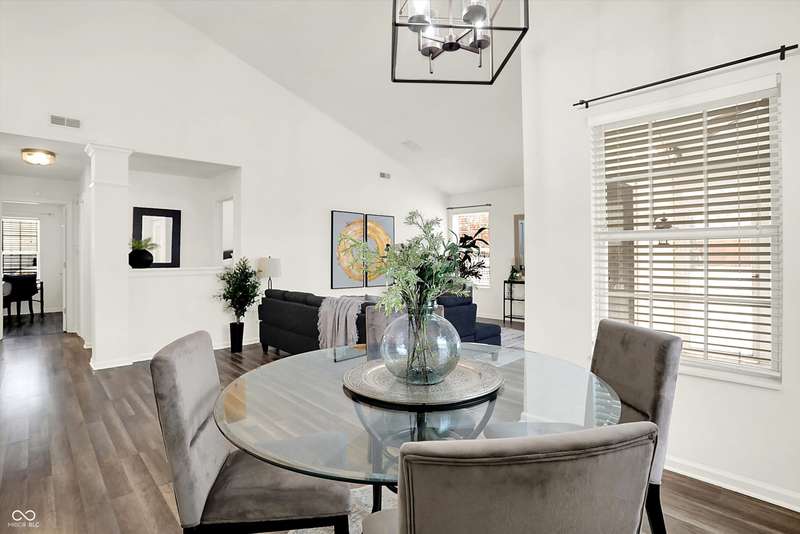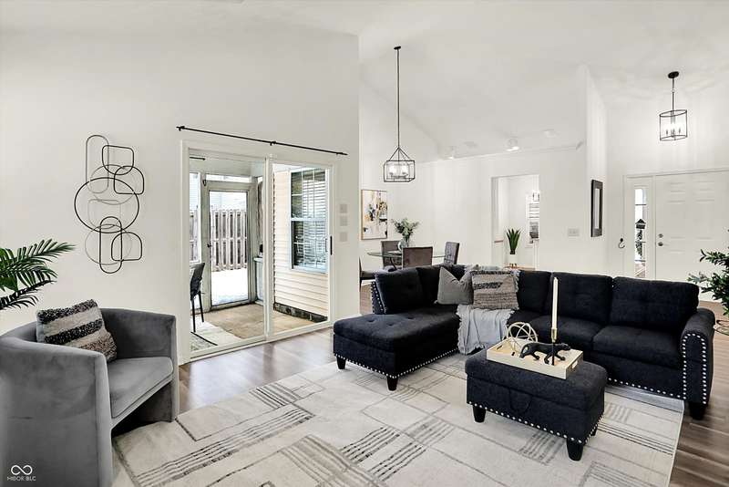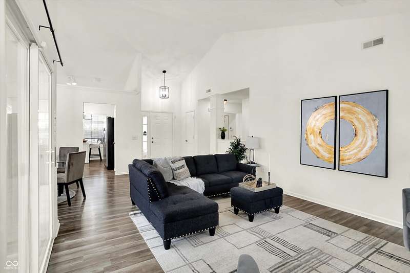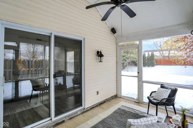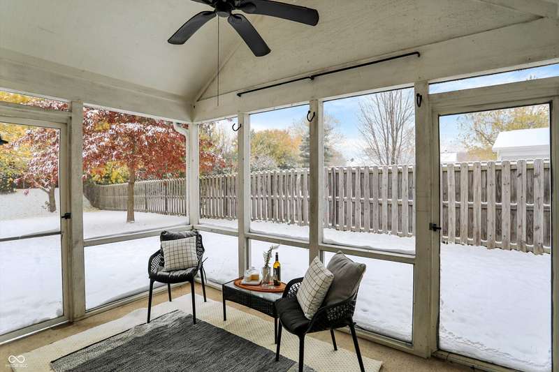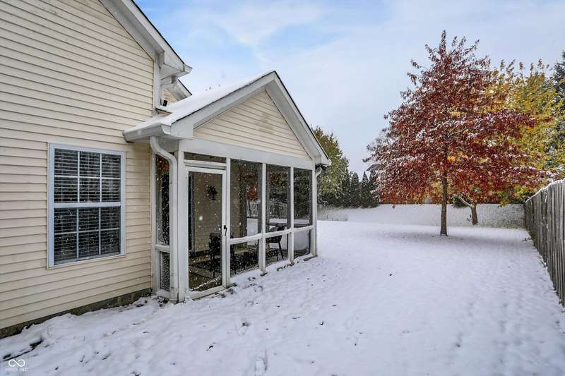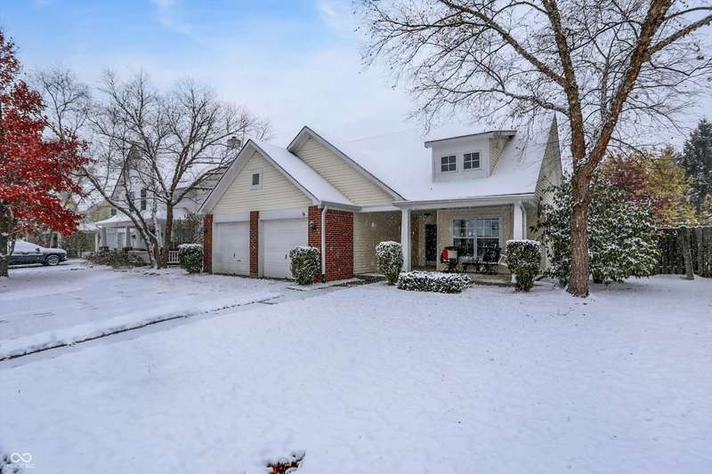 Welcome home to this charming ranch tucked away on a quiet cul-de-sac in one of the area's best located neighborhoods-complete with fantastic amenities! The inviting front porch sets the tone; perfect for a porch swing and relaxing or chatting with neighbors. Step inside to a two-story foyer, laminate floors throughout, and updated lighting that brightens every room. The flexible floor plan offers a formal dining room (or home office), and a light-filled kitchen with all appliances included. The primary suite features a tile bath and an oversized walk-in closet, while the entire home boasts fresh paint and even built-in audio for effortless entertaining. Out back, you'll love the screened-in porch overlooking a large, fully fenced yard-ideal for gatherings or quiet evenings. All this, plus an unbeatable location near Kroger, Target, Home Depot, Costco, restaurants, and easy interstate access! Minutes from the adorable Zionsville Village and a short commute to Carmel Arts District.