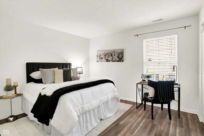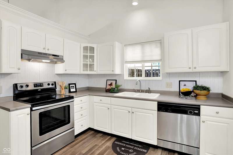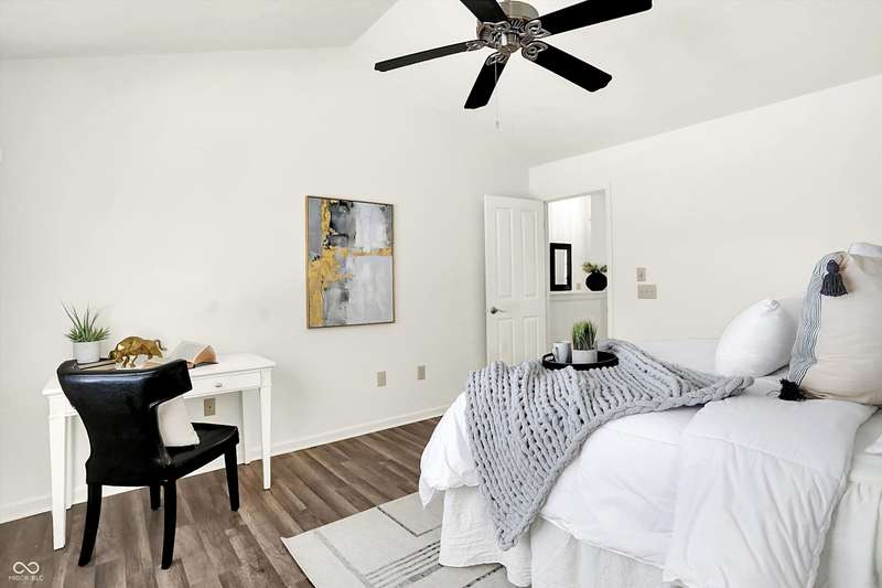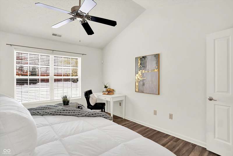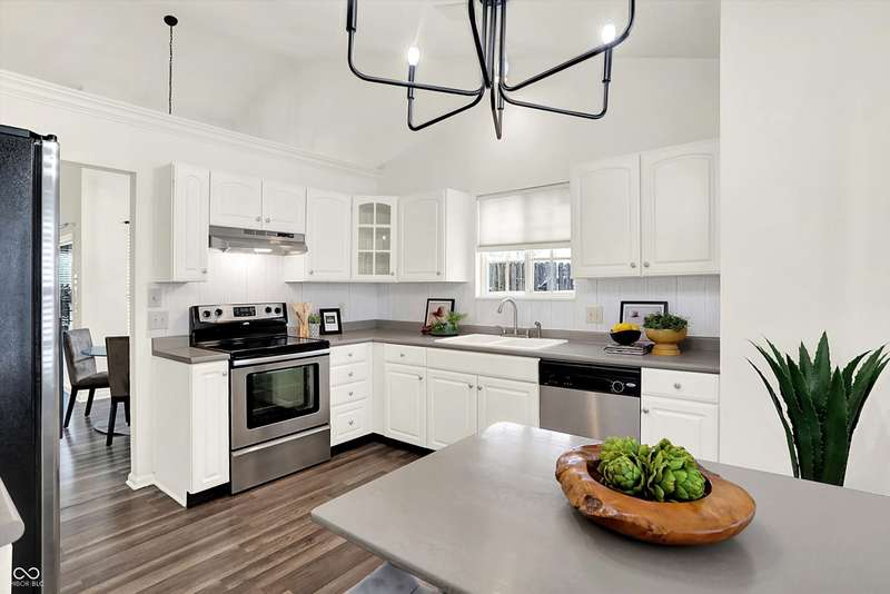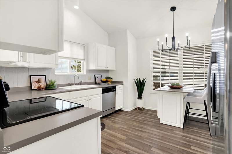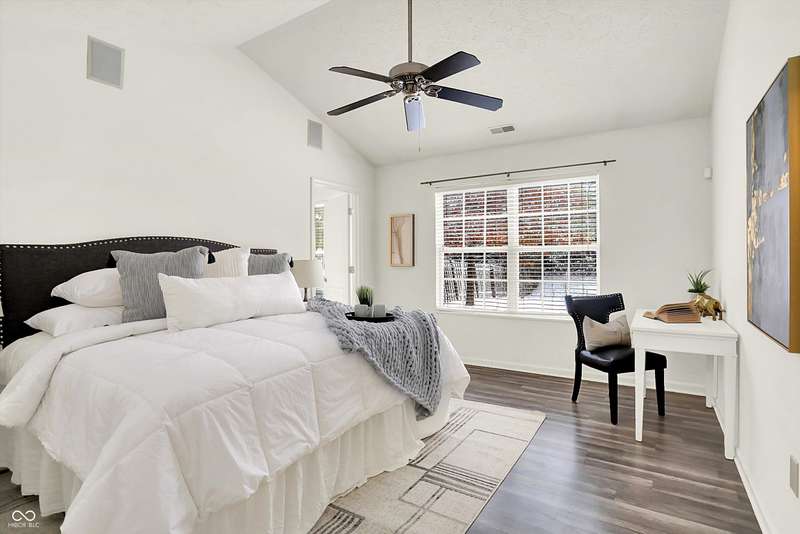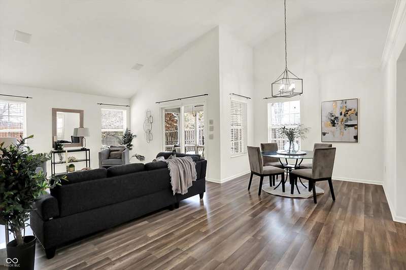 Welcome home to this charming ranch tucked away on a quiet cul-de-sac in one of the area's best located neighborhoods-complete with fantastic amenities! The inviting front porch sets the tone; perfect for a porch swing and relaxing or chatting with neighbors. Step inside to a two-story foyer, laminate floors throughout, and updated lighting that brightens every room. The flexible floor plan offers a formal dining room (or home office), and a light-filled kitchen with all appliances included. The primary suite features a tile bath and an oversized walk-in closet, while the entire home boasts fresh paint and even built-in audio for effortless entertaining. Out back, you'll love the screened-in porch overlooking a large, fully fenced yard-ideal for gatherings or quiet evenings. All this, plus an unbeatable location near Kroger, Target, Home Depot, Costco, restaurants, and easy interstate access! Minutes from the adorable Zionsville Village and a short commute to Carmel Arts District.
