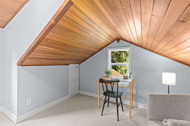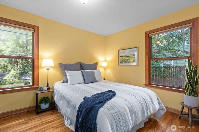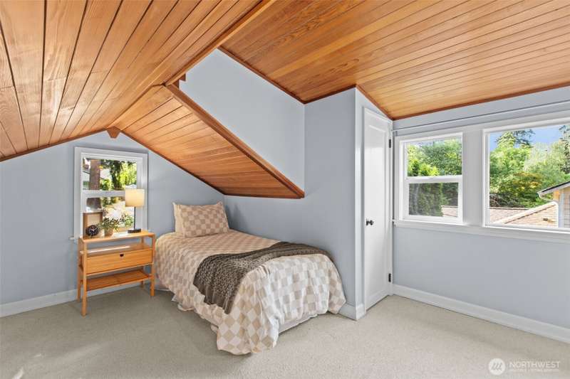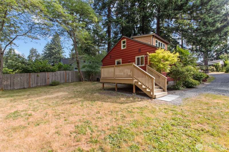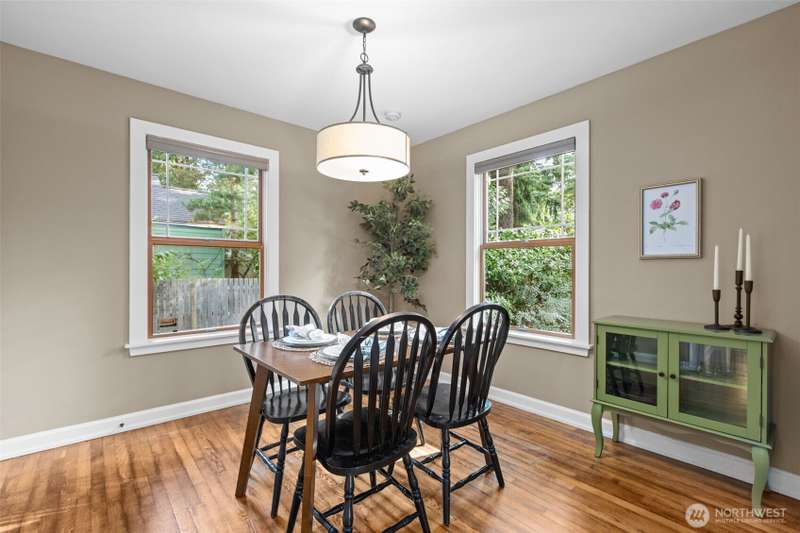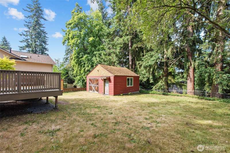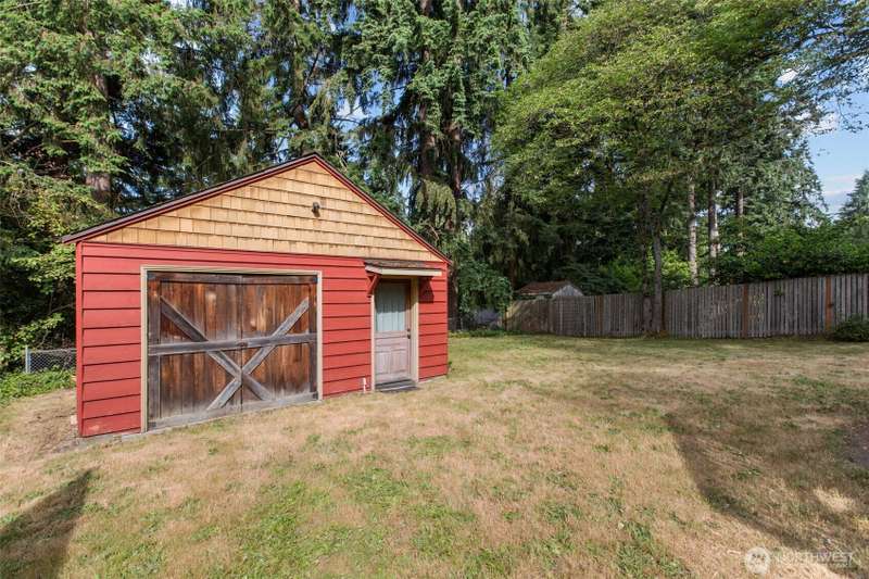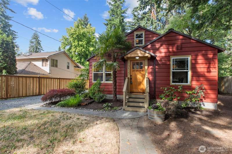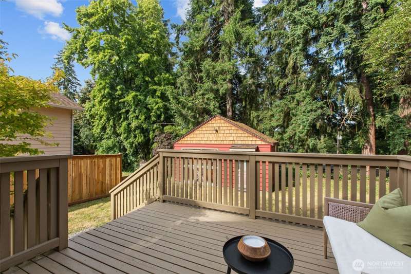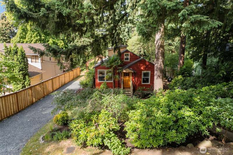 Charming cottage in the woods craftsman. Welcome to your in-city oasis. Freshly painted in and out, new A/C + furnace, gutters + newer metal roof, +updated plumbing and electric. Gleaming hardwoods throughout the main, eat-in kitchen with a separate dining room off the living room and a main floor bedroom/bath. A fully finished basement with newer carpet is easily used as a family room or primary suite with a private bath. Upstairs a quaint lofted bedroom with bright territorial views & a quiet reading nook + WFH space. Off the kitchen, a huge fenced backyard awaits and a deck ready for you to entertain. The garage + outbuilding has electric power and is ready for your finishing touches! Welcome home.