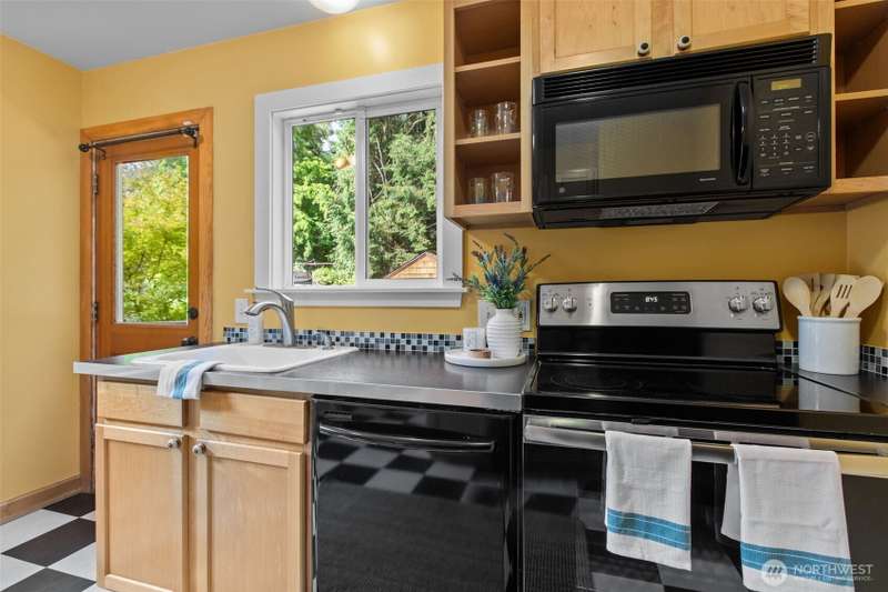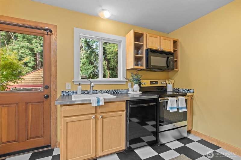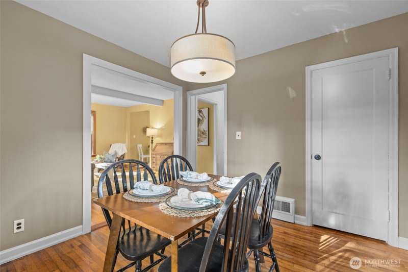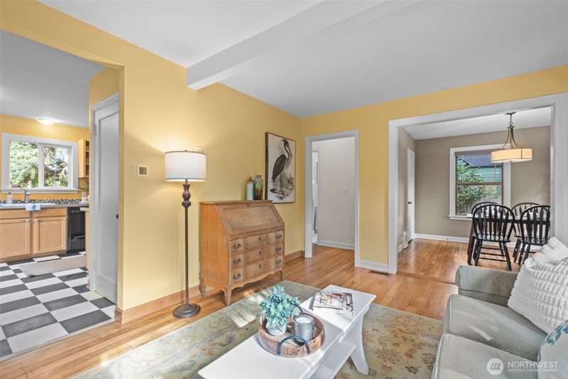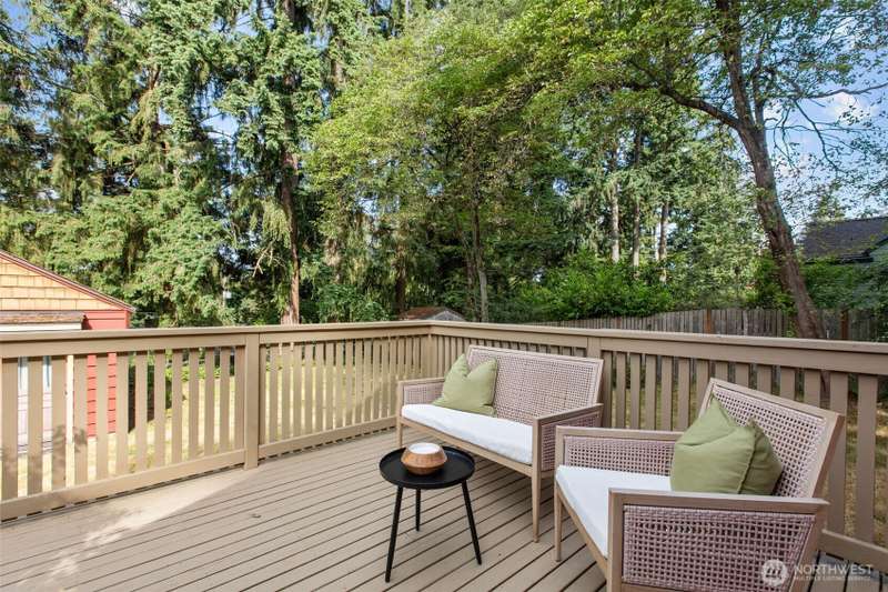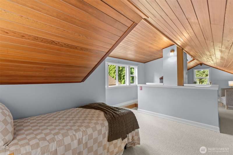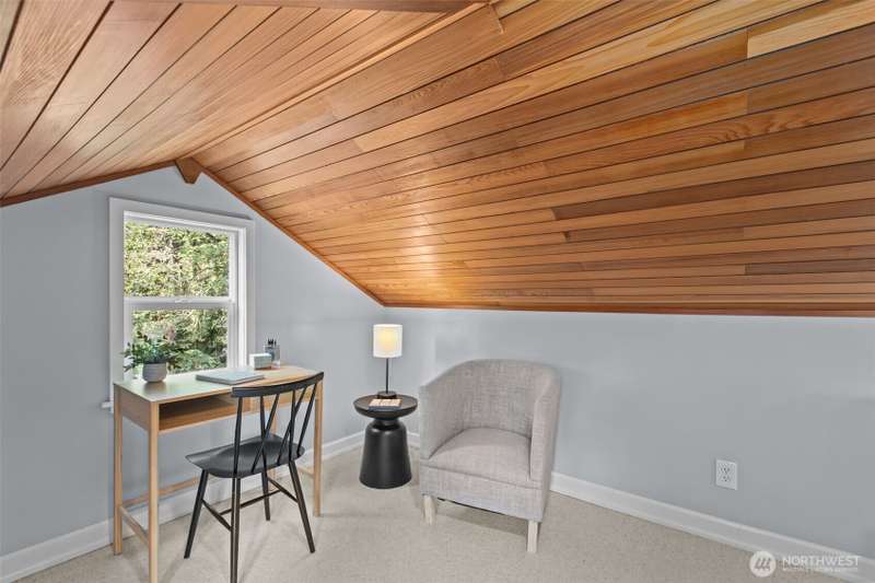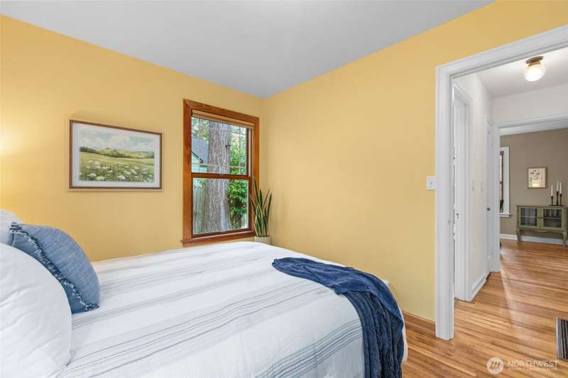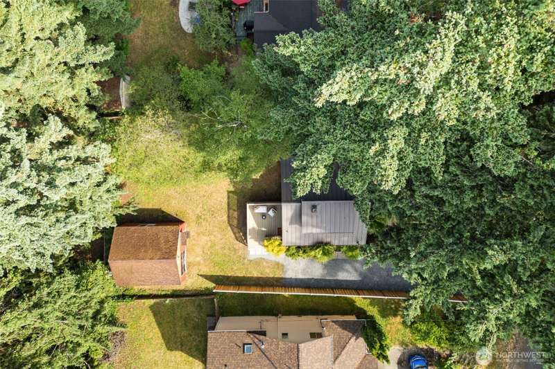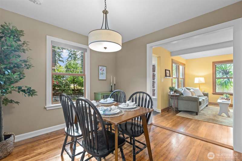 Charming cottage in the woods craftsman. Welcome to your in-city oasis. Freshly painted in and out, new A/C + furnace, gutters + newer metal roof, +updated plumbing and electric. Gleaming hardwoods throughout the main, eat-in kitchen with a separate dining room off the living room and a main floor bedroom/bath. A fully finished basement with newer carpet is easily used as a family room or primary suite with a private bath. Upstairs a quaint lofted bedroom with bright territorial views & a quiet reading nook + WFH space. Off the kitchen, a huge fenced backyard awaits and a deck ready for you to entertain. The garage + outbuilding has electric power and is ready for your finishing touches! Welcome home.