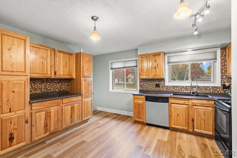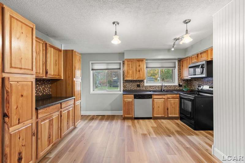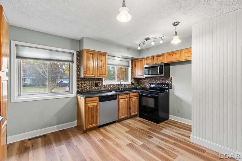 Beautiful brick home with great renovations.Updated kitchen and new floors. . Large deck.New roof 2023, New Furnace2023, New Central A/C 2023, LVP flooring throughout upstairs, 2023, New Bathroom and Kitchen fixtures 2025, New Craftsman Garage Door Opener 2025 Move right in! Last house on the street!