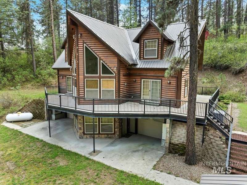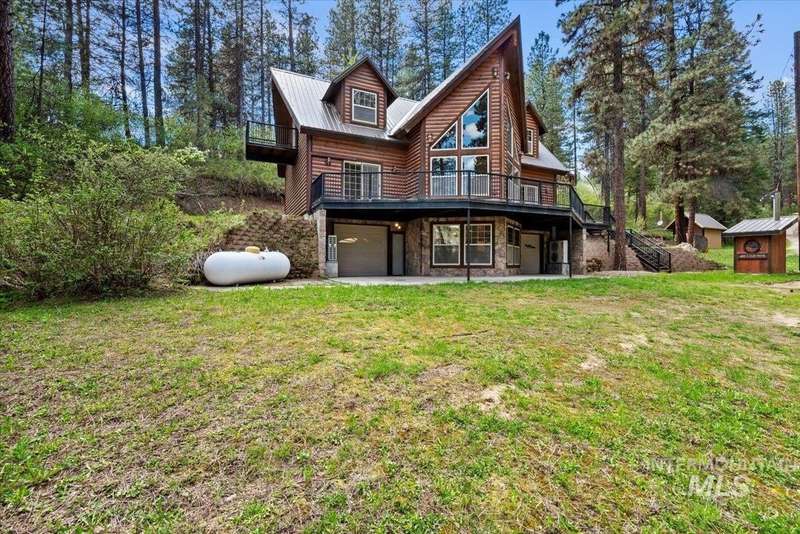 Charming Log Cabin Retreat Near the Middle Fork Payette River. Nestled among mature pines, this spacious and well-maintained log cabin offers the perfect blend of rustic charm and modern comfort. Located just a short distance from Garden Valley, it’s an ideal year-round residence or mountain getaway. Enjoy the outdoors from the expansive wrap-around deck—perfect for relaxing, entertaining, or watching wildlife. Inside, the great room welcomes you with vaulted ceilings and floor-to-ceiling windows that flood the space with natural light. The main-level primary suite provides comfort and convenience, while the upper level offers two additional bedrooms—ideal for family or guests. Built with a durable all-steel framework and energy-efficient foam insulation, this home combines timeless craftsmanship with lasting quality. Recent upgrades include a backup generator and updated mini-split HVAC units, ensuring modern comfort and peace of mind. With ample space for recreational vehicles, this property has it all.