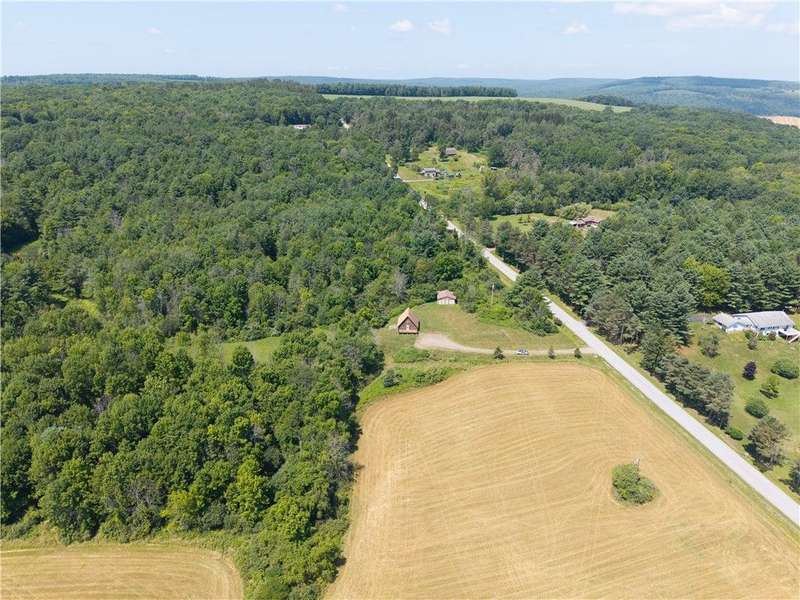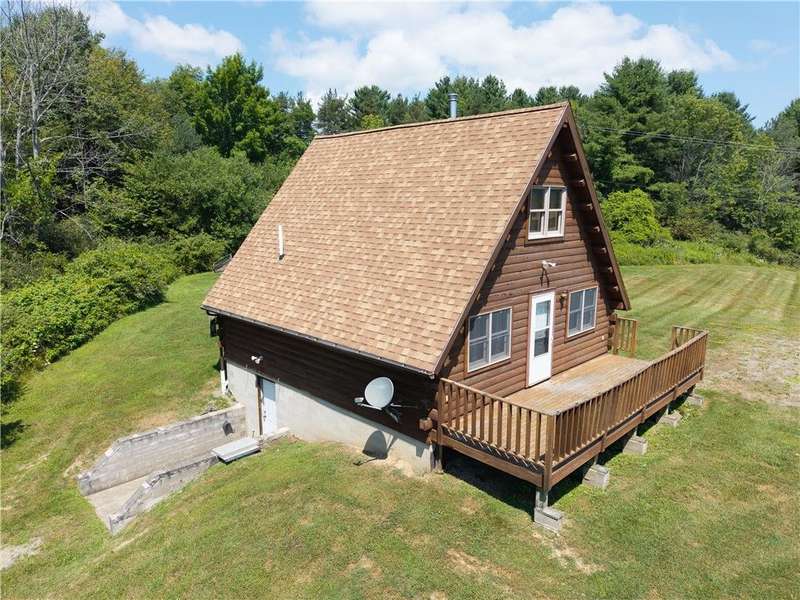 Nestled in the rolling hills near Sugarcreek Farms in Ossian is where you will find this 2002 log cabin that offers a peaceful country atmosphere on 62.5 stunning acres. This seasonal cabin features 2 bedrooms, 1 full bath with stand-up shower and a loft area overlooking the vaulted ceilings in the main living space. Kitchen with all appliances adjoins to the dining and living room. Home sits on a full basement with walk-out. Currently heated by a wood stove but could easily have a HVAC installed. Perfect as a hunting retreat, weekend getaway, or full-time residence, the property boasts excellent wildlife activity and natural beauty and connects to the Canaseraga State Lands. A 24 X 30 barn/garage with electric provides ample storage and is ideal for equipment or another hobby use. Home is being offered fully furnished - would make a fantastic Air BNB for the right investor. Enjoy privacy, space, and the rustic charm of log cabin living - all within reach of modern conveniences. Located just 45 minutes from Rochester or Corning and less than 15 minutes from Swain Ski Slopes.