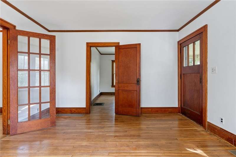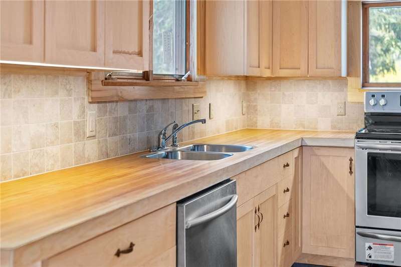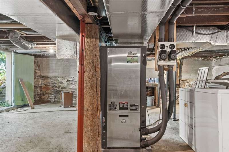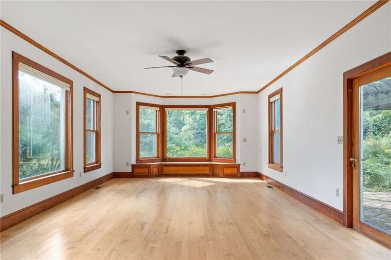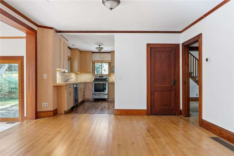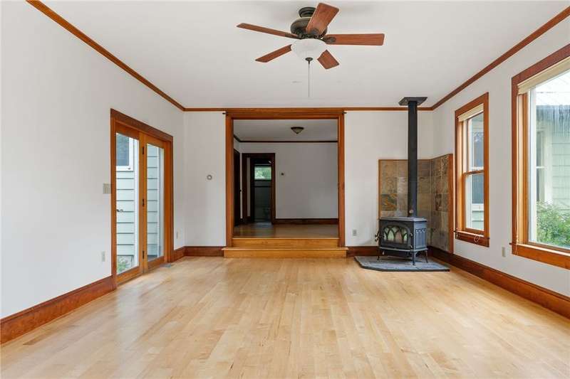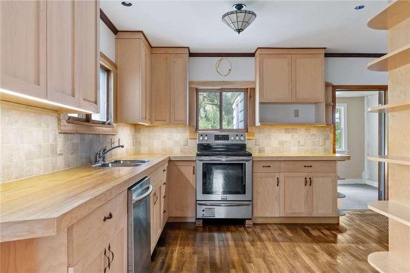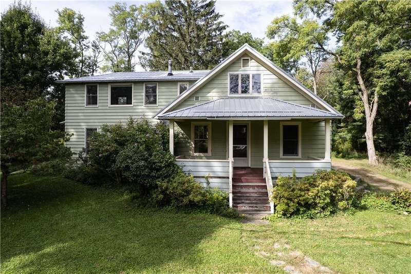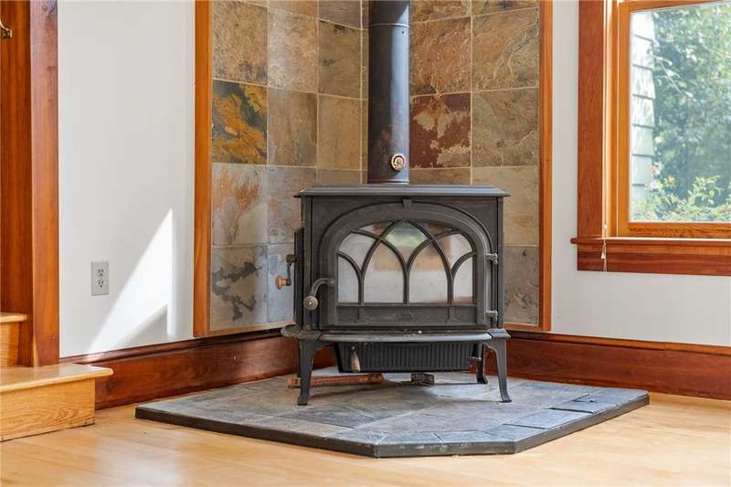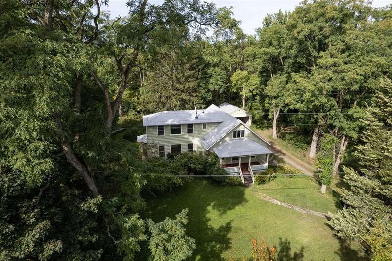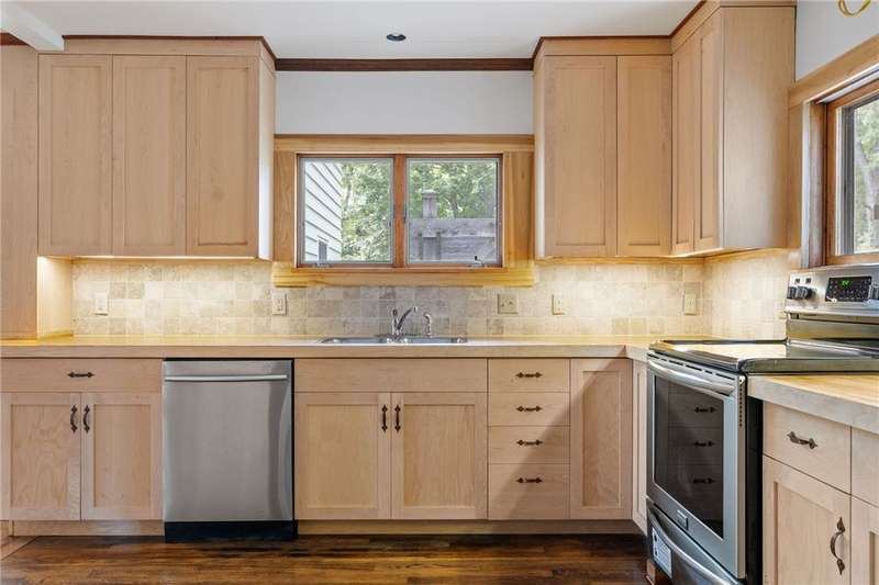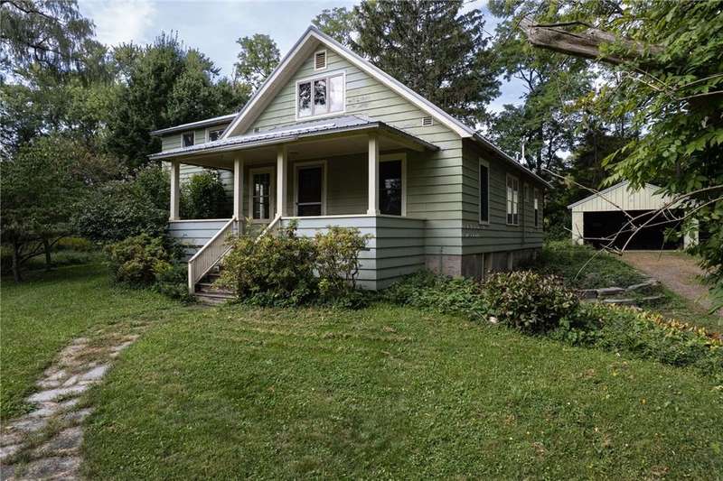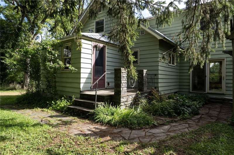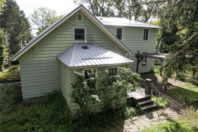 The best of Old and New. Charming 1933 Craftsman bungalow with a stunning two-story addition featuring windows all around, nine-foot ceiling, gleaming floors, a wood-burning stove, a window seat, and cherry trim. Gorgeous new kitchen with custom cabinetry, a convection stove, refinished wood floors, and counters that were bowling lanes in an earlier life. Four bedrooms including two on the first floor and a huge upstairs primary that makes you feel like you are in a treehouse. Geothermal heating and cooling, hybrid heat pump water heater, new roof by Alpine Metal Roofing, insulation by Snug PlanetSpacious, private lot with a slate patio and pergola, gardens, woods, berries, and a large pond. Just a short walk from the Black Diamond Trail and an easy commute to Ithaca or Trumansburg. OPEN HOUSE Saturday, November 1, 11:00-1:00.
