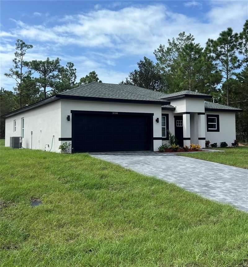 New Construction in Citrus Springs; Move-In Ready! Step into modern elegance with this stunning brand-new 4-bedroom, 2.5 -bath home thoughtfully designed for comfort and style. Featuring a bright open floor plan, this home is perfect for family gatherings and entertaining. The elegant kitchen is a showstopper, offering a central island, quartz countertops, stainless steel appliances (including refrigerator, stove, dishwasher, disposal, and microwave), and abundant cabinet space. The open living and dining areas flow seamlessly to the outdoors, where sliding doors lead to a covered lanai and a spacious backyard ideal for relaxing, entertaining, or even adding a pool. Inside, you and will find durable hard surface flooring throughout (no carpet!), beautifully tiled baths, and elegant finishes in every detail. Curb appeal shines with a brick paver driveway, complemented by a 2-car garage and security. Located in the peaceful community of Citrus Springs, this home offers easy access to shopping, dining, nature trails, and the Gulf Coast. Whether you are a first-time buyer, downsizing, or searching for a Florida retreat, this home checks all the boxes. Don't wait schedule your private showing today and make this beautiful new home yours