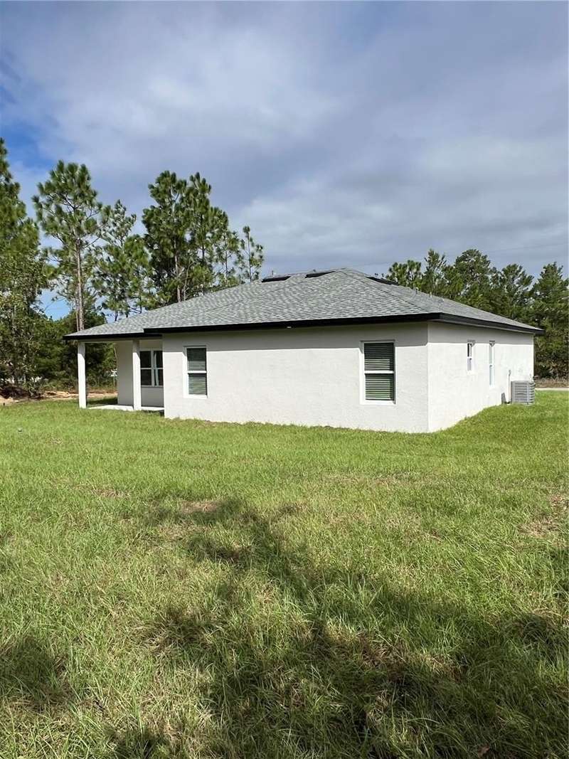 Under contract-accepting backup offers. New Construction in Citrus Springs; Move-In Ready! Step into modern elegance with this stunning brand-new 4-bedroom, 2.5 -bath home thoughtfully designed for comfort and style. Featuring a bright open floor plan, this home is perfect for family gatherings and entertaining. The elegant kitchen is a showstopper, offering a central island, quartz countertops, stainless steel appliances (including refrigerator, stove, dishwasher, disposal, and microwave), and abundant cabinet space. The open living and dining areas flow seamlessly to the outdoors, where sliding doors lead to a covered lanai and a spacious backyard ideal for relaxing, entertaining, or even adding a pool. Inside, you and will find durable hard surface flooring throughout (no carpet!), beautifully tiled baths, and elegant finishes in every detail. Curb appeal shines with a brick paver driveway, complemented by a 2-car garage and security. Located in the peaceful community of Citrus Springs, this home offers easy access to shopping, dining, nature trails, and the Gulf Coast. Whether you are a first-time buyer, downsizing, or searching for a Florida retreat, this home checks all the boxes. Don't wait schedule your private showing today and make this beautiful new home yours
