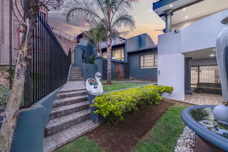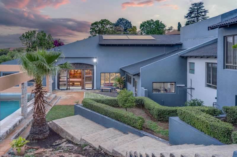 Looking for a luxury home with entertainment and work from home facilities? Experience elevated living in this exquisite multi-level property perched on Northcliff Hill, offering breathtaking panoramic views of Johannesburg,. This spacious 7-bedroom home features 2 massive ensuite bedrooms, with balconies and views, on the upper floors, and 5 bedrooms plus study, on a lower level with 2 well-appointed bathrooms (1 Tub, 1 shower), Ideal for entertaining, the property boasts a chef’s kitchen on the ground floor outfitted with a gas stove, double-door fridge space, and a separate scullery with space for 3 or more appliances and massive pantry for storage, as well as a breakfast nook looking into the 3smoothly interleading reception areas , as well as a built-in bar and a separate formal dining room with a cozy gas fireplace , plus an additional guest shower adjacent to the reception area, for comfortable access for guests, and a glass front to enable maximum enjoyment of the panoramic views. Upstairs, overlooking the reception area is a TV lounge or boardroom and a dedicated office space with its own balcony, offering a private retreat for business or separate family entertainment. Outside, relax by the sparkling pool, set amid an entertainment area and spacious courtyard, with a mini garden, leading off the reception areas. At the entrance, there is ample parking for 4-5 cars and a 3-car garage, with an easy maintenance, tiered garden for an impressive introduction to the property. . All of this plus excellent security and maximum privacy, situated in a quiet cul-de-sac at the top of the hill. Solar panels for electricity and Borehole water for uninterrupted facilities in spite of any outages. Northcliff offers easy access to Sandton, Rosebank, Dunkeld, Hyde Park and Melrose Arch business Centres, as well as JHB CBD, Braamfontein, Wits and UJ Universities as also the West Rand. There are plentiful schools both private and government sponsored, and lots of shopping centres in the area and surrounds, and if your preference is a day at the Mall, Cresta Mall is 5 minutes away by car. Religious amenities for all persuasions are also available close by. With every convenience for family living and refined entertaining, this property truly redefines hillside luxury. OFF THE GRID!! Solar panels plus prepaid electricity if necessary Borehole Water plus Municipal water facility Available with 2bed Cottage for R52 000 Availability Immediately Pet Friendly! Viewing by appointment only