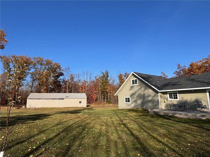 Gorgeous newer 4 BR, 2 BA home, great curb appeal, one level living, maintenance free & high-end finishes! Wind down the private drive to this perfect home with an A1 location just west of Siren and a few minutes from Hwy 70. 5.26 private acres with a great mix of lawn & woods and a patio to enjoy after a long day. Att. 2 car insulated gar. & 28x66 pole bldg. w/elec. to store all of the toys! Updated flooring, interior repainted, fun contrasting trim, barn doors added, new roof 2022, HVAC serviced every year and well maintained. Light & bright interior, cozy living room w/stone LP gas frplc., vaulted ceilings, wonderful kitchen w/custom cherry knotty alder cabinets, lots of storage, granite counters. Dining room off the kitchen for ease of entertaining. Stunning master suite offers your own personal haven w/clawfoot tub to soak in, walk-in closet. Guests or teens will love their own private loft BR. This home boasts all the appointments you seek and definitely checks all the boxes!