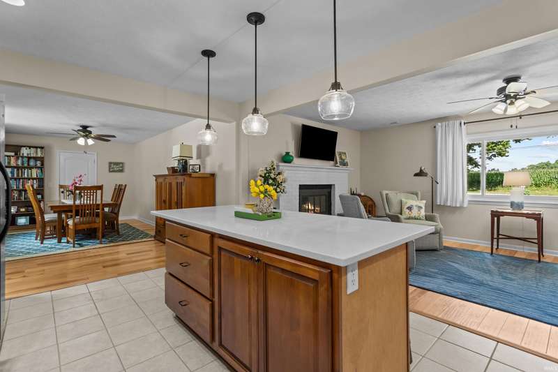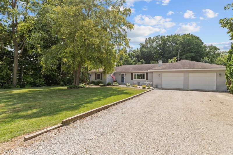 Welcome to this stunning 2-3 bedroom, 2-bathroom home on a ½-acre lot in Northwestern Schools. Fully remodeled by Cardwell Built Construction, this home blends style, comfort, and quality craftsmanship. Step into a designer kitchen featuring gorgeous cabinetry, a large island with quartz countertops, a tile backsplash, and tile flooring. The open-concept layout connects the kitchen, dining area, and a cozy living room with a fireplace and hardwood floors. A vaulted ceiling sunroom with expansive windows offers breathtaking views of the wooded backyard and fire pit—perfect for relaxing or entertaining. Updates over the past decade include new windows, paint, flooring, fixtures, countertops, a Generac generator, and the beautiful sunroom addition. Outdoor features include a 2+ car attached garage, a large shed, and plenty of space to enjoy the serene setting. This move-in-ready home offers the best of modern updates with peaceful, private surroundings