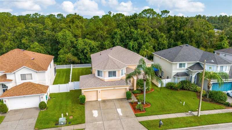 Welcome to Northwood! If you're looking for a large home with lots of flexibility on how to use the space this could be the one! This home has 6 bedrooms, 3 full bathrooms and just over 3,000 sq ft, perfect for those that need an office space, play room, craft room or more! The owners had the INTERIOR PAINTED and CARPET REPLACED along with updating lighting fixtures in August of 2025. The ROOF is only 3 years old! Do you like to entertain? You'll love the large dining, living and family areas that will make it comfortable for hosting large gatherings. The kitchen provides plenty of counter space and room around the island allowing for multiple chefs working on food prep and it has the perfect breakfast nook that looks out to the screened lanai and pool. There is one bedroom and bathroom downstairs and you'll find the rest of the bedrooms and laundry upstairs. If you want a TRUE PRIMARY SUITE, this one is massive so you can set up a sitting area for morning coffee or nighttime reading. Ready to head outdoors? You can enjoy your conservation view as you watch the little ones and pets play in the pool or the fenced in backyard. For over 20 years the current owners have opened their home to large groups and have created many memories and now it's time to pass it along to someone that can love it as much as they have. Location is everything and this neighborhood has it. You'll be 2 miles to Publix and The Shops at Wiregrass, 10 minutes to the Tampa Premium Outlets and you're close to 75 to get you downtown. There are lots of options for restaurants, coffee shops and more!