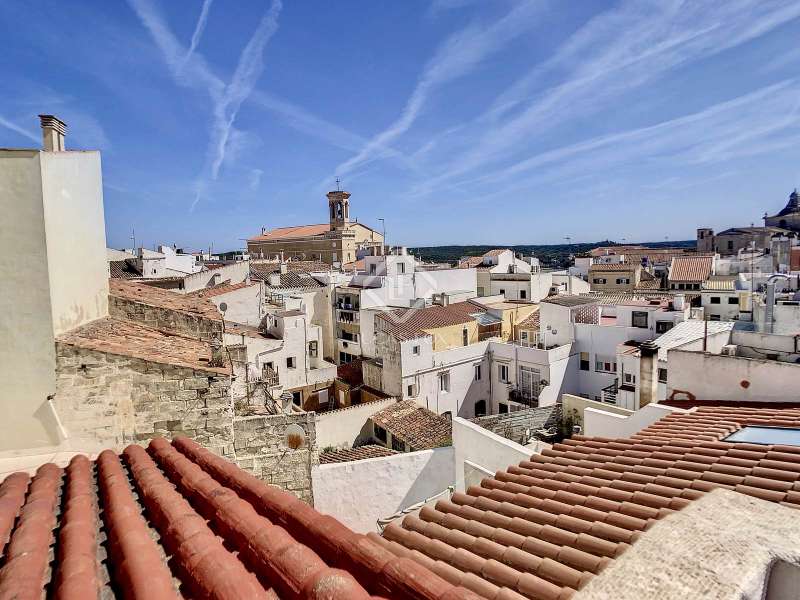 This stately home of 331 m² is distributed over three floors. Upon entering the house, we are welcomed by a small hall with a beautiful staircase that leads to the upper floor. On the ground floor, the hall gives way to a spacious living-dining room and a corridor leading to the spacious interior patio with many plants and mirrors with plenty of natural light from its glass vault. Crossing this patio, we reach the large kitchen on a higher level. Back in the entrance hall, we find a bathroom with a shower and a door with access to the lower ground floor that has two bathrooms and a large space to use as a cellar or a chill-out area. The ground floor is completed with two rooms that can be used as living rooms or bedrooms. On the first floor, we find another two very large double bedrooms, one of them with access to the balcony and views of the interior patio, and the other has two original shutter doors with access to the balconies and views of the pleasant and quiet street with beautiful trees. The floor is completed with a bathroom and a smaller bedroom with two beds, one double and one single. On the second floor, we find another two double bedrooms. From here there is a staircase with access to the roof terrace with panoramic views of the city of Maó. The house benefits from preserved period elements, such as vaulted arches, a wooden staircase, parquet flooring and original mosaic flooring in some areas. Although the house is very complete, it has the privilege of some plans from an architect for an idea of a perfect renovation. For example, you could have a garage for two vehicles and some work premises on the ground floor. The house is located in one of the most prestigious streets in the city of Maó. It is a unique opportunity to live in the centre of the city and make the most of everything it offers: leisure, restaurants, shops. And one step away from all the tourist and interesting places of the capital. It is, without a doubt, a very interesting home both to set up your own residence and to make rent profitable. Contact us for more information, or to arrange a visit.