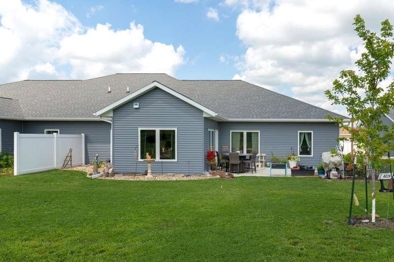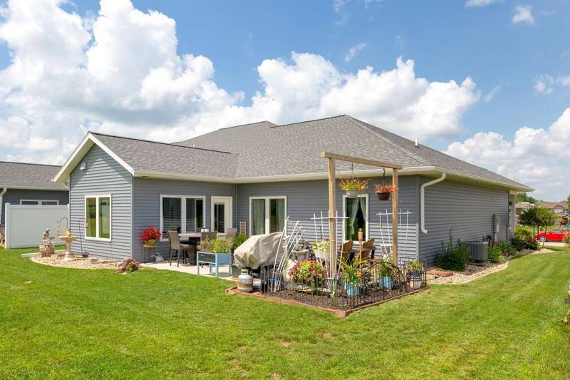 Modern comfort meets effortless style. Step into this stunning twin home, designed for comfort, style, and convenience. Built on a slab foundation for easy living, this home features a contemporary floor design. The chef inspired kitchen includes stainless steel appliances, a generously sized island for cooking and entertaining and convenient walk-in pantry. Enjoy the warmth of heated floors during the cooler months and large windows that flood the space with natural light. Your primary suite is a private retreat with an oversized bedroom, expansive walk-in closet and luxurious tiled shower. There are two additional bedrooms and full guest bath. Laundry room and mechanical/safe room are just a few steps away. For storage and convenience, the attached 3-stall heated garage offers plenty of room for vehicles, tools and hobbies. Located in the desirable Willowtree Addition of Shell Rock.