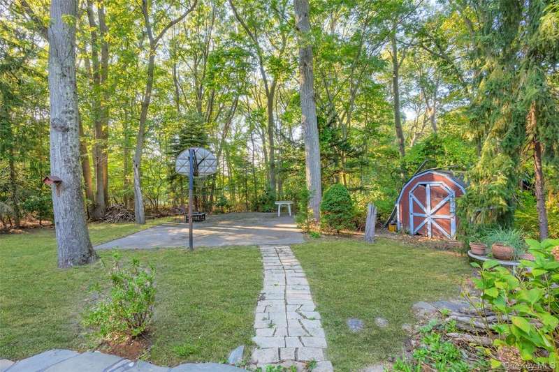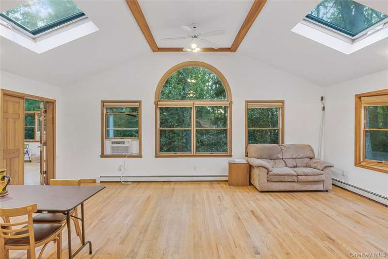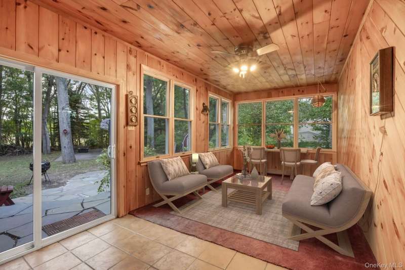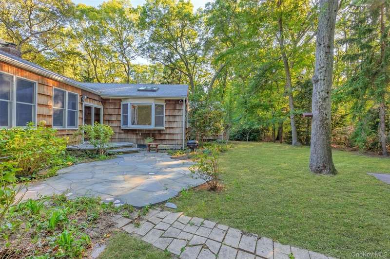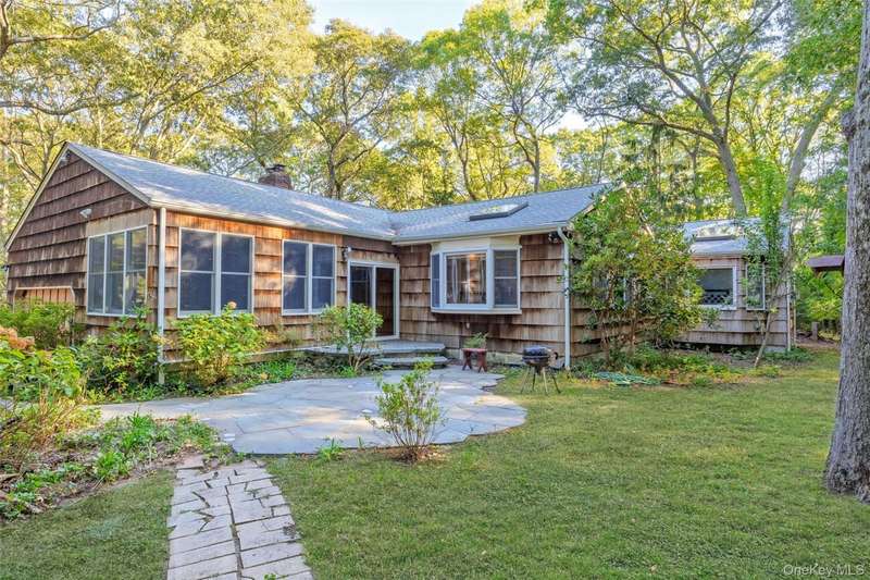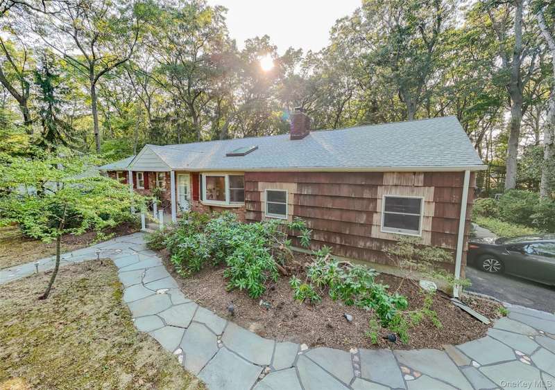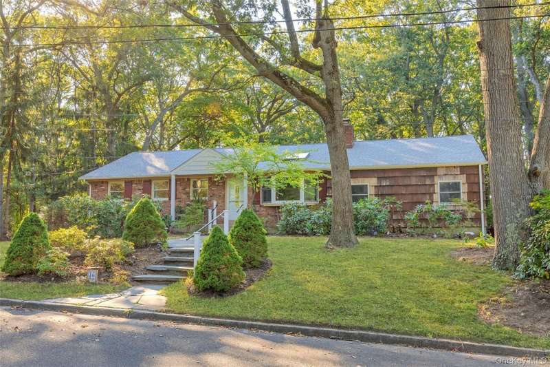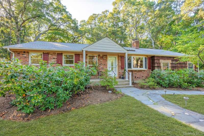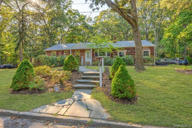 Welcome to 30 Yorktown Road! This expanded ranch offers over 2,200 square feet of comfortable living space with 4 bedrooms and 3 full bathrooms-all on the main level. Inside, you'll find vaulted ceilings in the den, rich hardwood floors throughout, and Anderson wood windows that bring in natural light from every angle.The home is thoughtfully designed with two primary suites, perfect for guests or expanded families. A bright enclosed three-season room provides the ideal spot to relax and enjoy the private wooded backdrop.Set on .62 acres, the property offers both space and privacy featuring natural stone walkways, steps and patios. Complemented by a 2-car garage and a full basement with the potential to double your living space. Located in close proximity to Stony Brook University, St. George's Golf Course, shopping, and dining-plus within the highly regarded Three Village School District-this home balances convenience and tranquility.