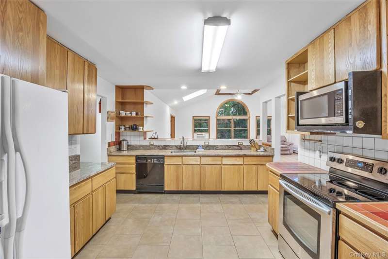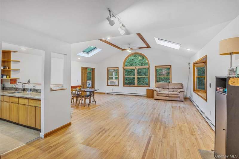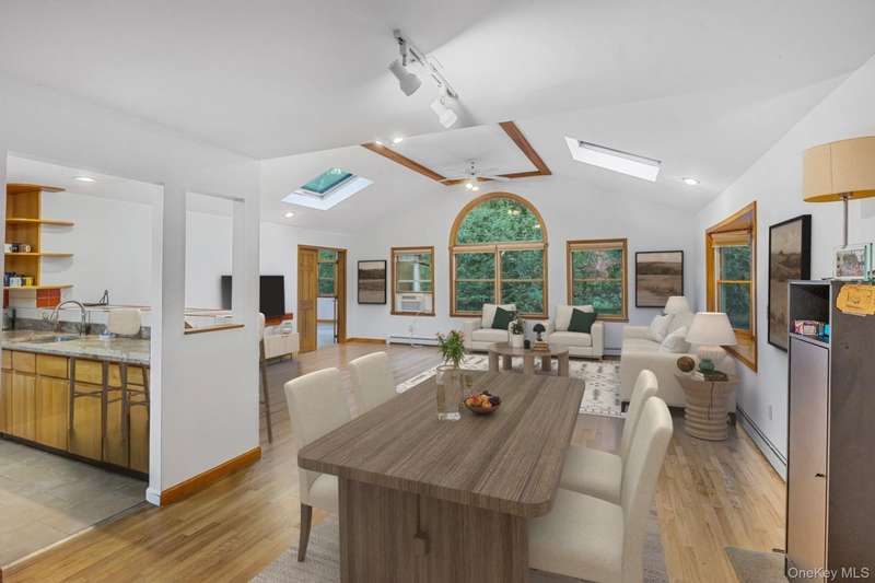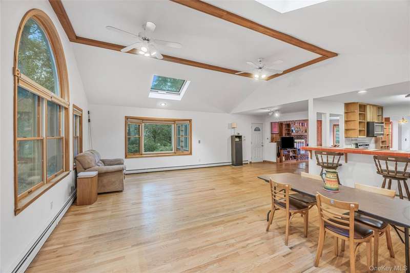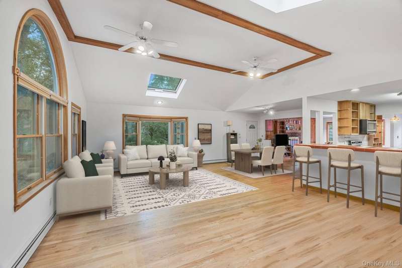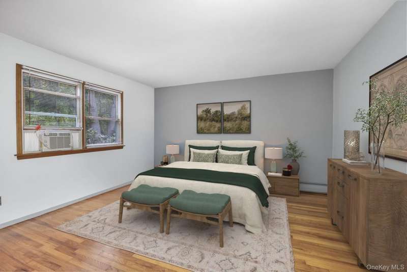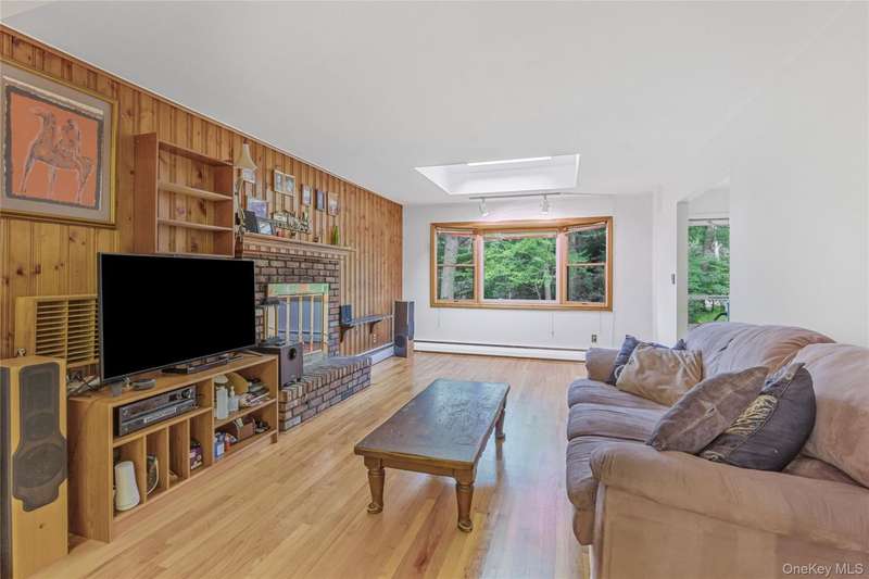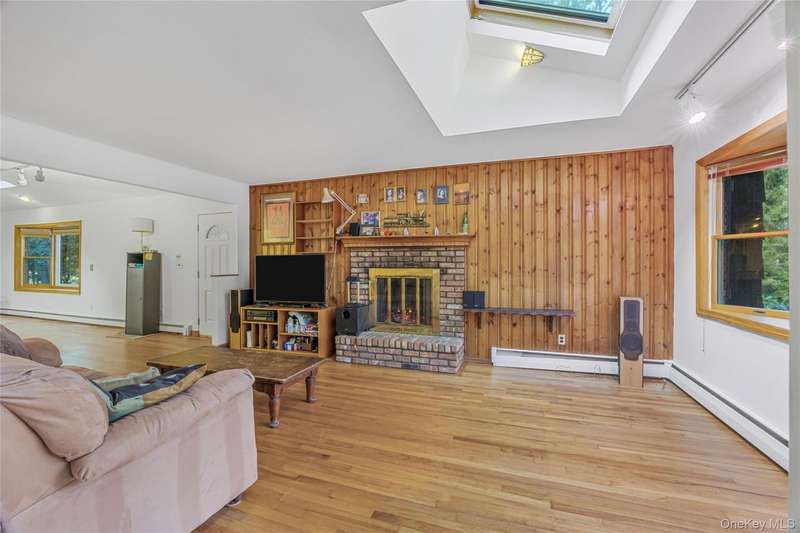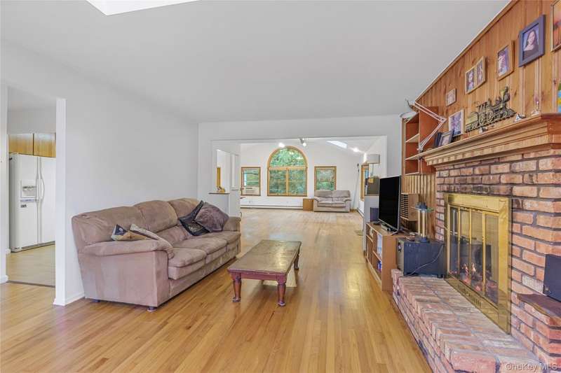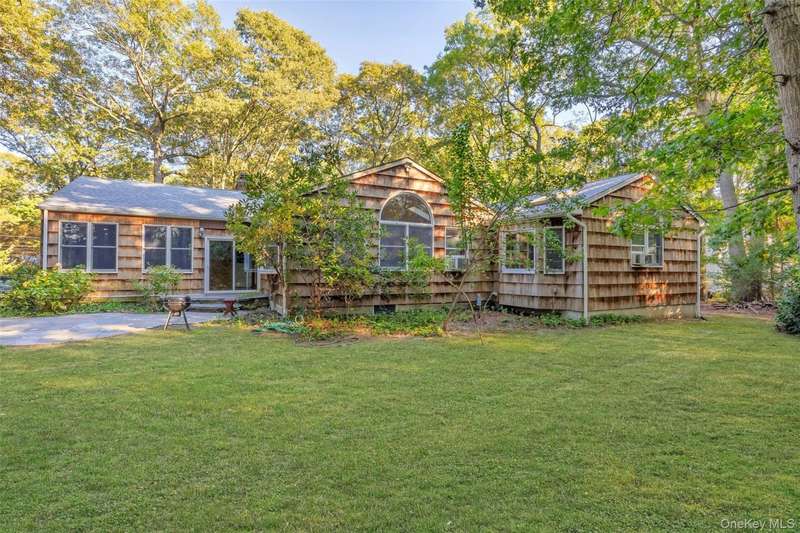 Welcome to 30 Yorktown Road! This expanded ranch offers over 2,200 square feet of comfortable living space with 4 bedrooms and 3 full bathrooms-all on the main level. Inside, you'll find vaulted ceilings in the den, rich hardwood floors throughout, and Anderson wood windows that bring in natural light from every angle.The home is thoughtfully designed with two primary suites, perfect for guests or expanded families. A bright enclosed three-season room provides the ideal spot to relax and enjoy the private wooded backdrop.Set on .62 acres, the property offers both space and privacy featuring natural stone walkways, steps and patios. Complemented by a 2-car garage and a full basement with the potential to double your living space. Located in close proximity to Stony Brook University, St. George's Golf Course, shopping, and dining-plus within the highly regarded Three Village School District-this home balances convenience and tranquility.