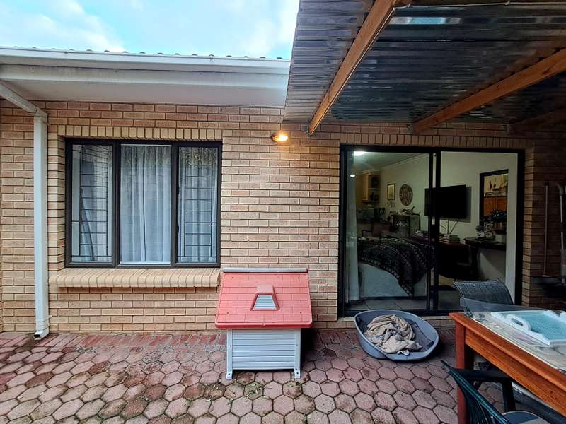 If you are an investor, first time buyer or wishes to scale down, then this property would surely meet your property needs. Tucked away in a well-kept complex, this well priced, face brick, neat and cosy two bedroom, one full bathroom house features an open plan living/kitchen/dining room area that leads to a private undercover patio with a built in braai. The kitchen features an electrical stove and overhead extractor fan, ample cupboards and counter tops, a breakfast nook and space for a double door fridge/freezer. Both bedrooms are large enough to fit a king or double bed and are fitted with built in cupboards. For those with furry friends, you'll be delighted to know that this townhouse is pet-friendly, allowing your beloved companions to join you in your new home. The community and its surroundings are also perfect for long walks and outdoor adventures. The home offers an extra length single automated garage that have space for your washing machine and tumble dryer. This could be your new safe haven, your home, don't miss out on the opportunity to make this remarkable townhouse your own.
