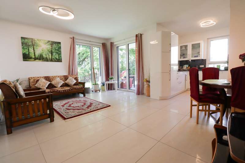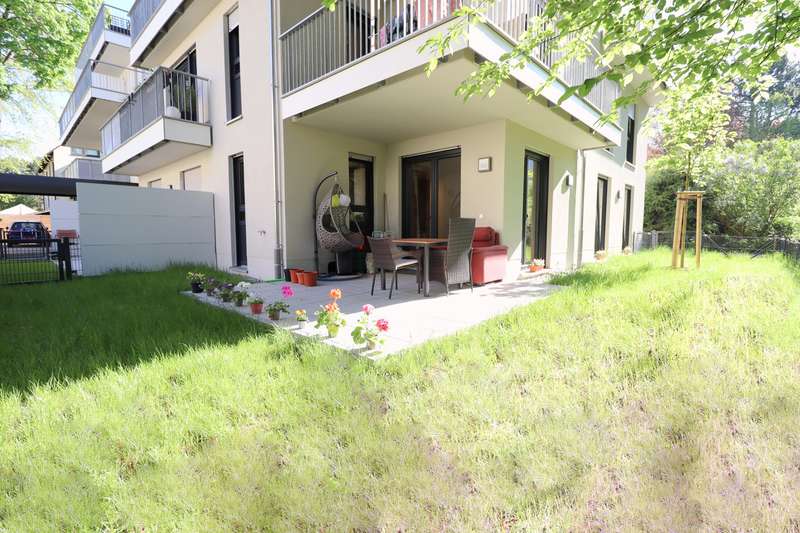 Beautiful garden apartment in Erlangen-Süd - quietly located in second row! For sale is an attractively designed apartment with a living space of approx. 96 m², which is characterized by an upscale quality of furnishings. The property was completed in 2024 and is in as-new condition. The apartment offers a total of four rooms, three of which are spacious bedrooms, which is particularly suitable for families or couples with additional space requirements. The covered terrace and the garden (garden approx. 68 sqm) offer space to "sunbathe and enjoy" or for the children to "play and run around" in summer. The orientation is perfect to S/W: One of the highlights of this property is the modern underfloor heating, which has been installed in all rooms and ensures even heat distribution. Two high-quality bathrooms offer additional comfort and make everyday life easier in a household with several people. The bathrooms are fitted with modern fittings and elegant tiles and ensure a pleasant feel-good atmosphere. The apartment also has a particularly spacious garden area with a beautiful covered terrace, which offers a variety of uses and significantly increases the quality of living, especially in the summer months. The apartment is located in the building, which was completed in 2024 and is characterized by its modern architecture and high-quality construction. Thanks to the well thought-out room layout, the apartment offers an ideal balance between communal areas and places of retreat. The central living area is bright and open and creates an inviting ambience. The adjoining kitchen offers ample space for culinary creations and promotes communicative interaction thanks to its proximity to the living area. The area surrounding the property offers an excellent infrastructure with short distances to public transport, shopping and leisure facilities. The central location makes it possible to enjoy city life to the full, while at the same time various recreational areas nearby offer space for relaxation. In summary, this apartment presents itself as an attractive residential property for all those who value high-quality furnishings and a comfortable living atmosphere. The combination of modern amenities, generous living space and practical outdoor areas makes this property a first-class choice for discerning buyers. Potential buyers are cordially invited to view this apartment on site to see the benefits for themselves. Please contact us for further information or to arrange a viewing.