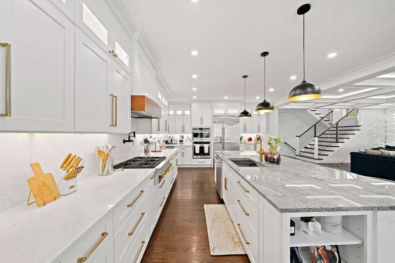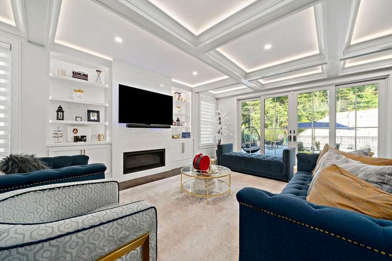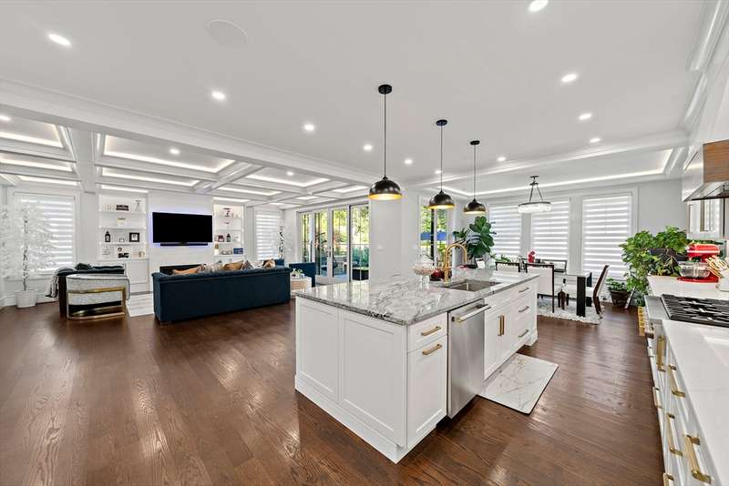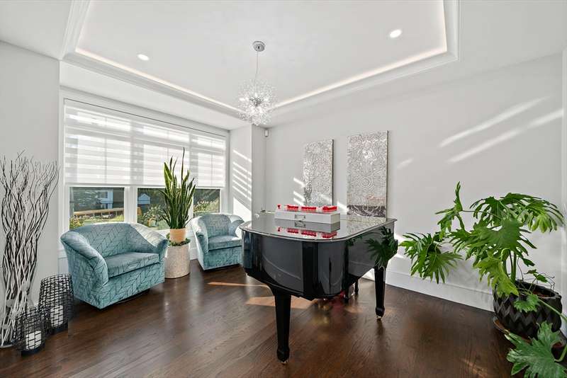 This Breathtaking Contemporary Colonial offers over 6,000 sq ft of thoughtfully designed space that balances elegance with functionality. The main level with an open floor plan highlights a gourmet chef s kitchen with high-end appliances, custom cabinetry, & center island, an adjoining spacious family room with coffered ceilings, gas fireplace and built-ins, a stylish piano room / living room and a champagne lounge that can also serve as a sophisticated office. The lower level boasts a private home theater with tiered seating and an expansive exercise room with a full bath. Upstairs showcases a spectacular primary suite, three additional bedrooms, and serene, spa-like bathrooms, while the third floor provides extra space as a playroom, guest suite, or in-law quarters with a full bath. Outdoors, a heated saltwater pool, oversized patio, and built-in audio create an entertainer s dream. Located minutes from highway access, this property offers both convenience and unparalleled luxury.