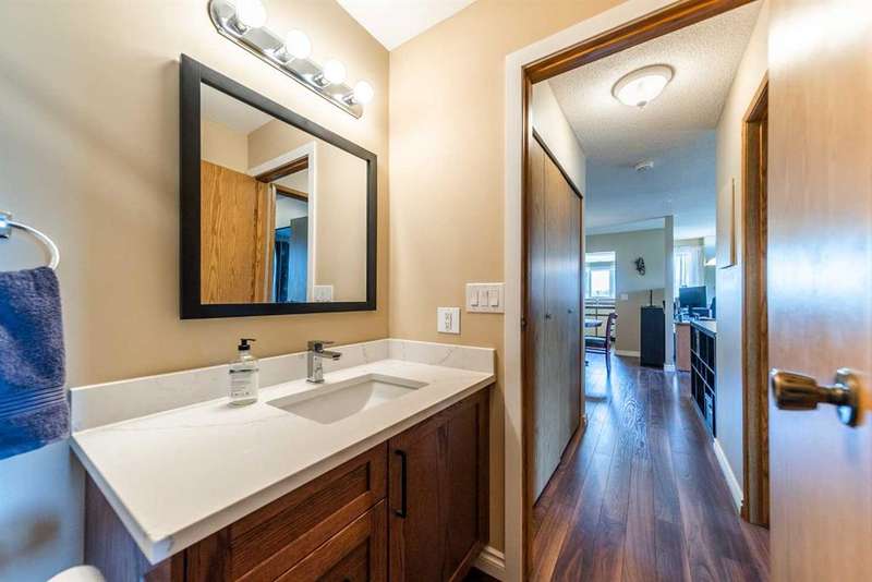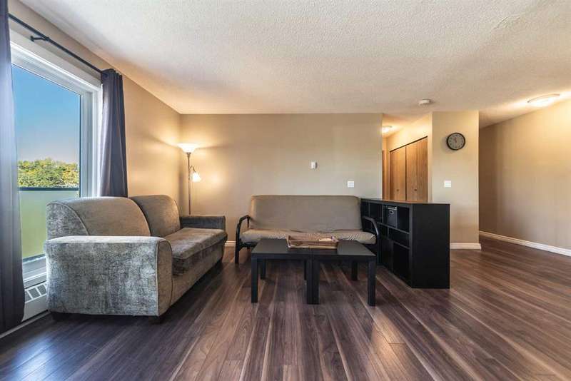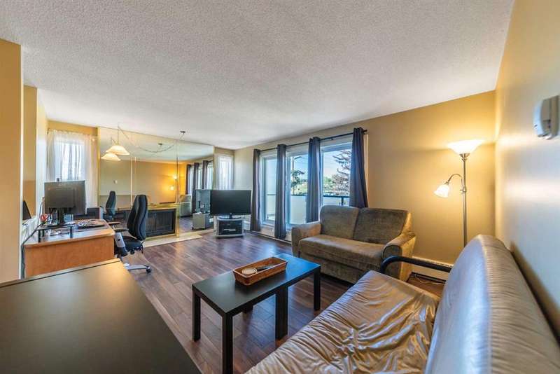 Welcome home to 409, 333 Garry Crescent; a classy, immaculately-maintained top floor condo well-located in the established community of Greenview. This one bedroom unit is spacious and bright with its large living room and access to west facing balcony to soak in the evening sun.  The U-shaped kitchen boasts a good amount of countertop space and features all new stainless steel appliances. The bedroom has his and hers closets and a bay window with a portable air conditioning unit.  The 4pc cheater ensuite has been recently renovated, featuring a deep soaker tub and quartz counters.  Laminate flooring throughout for easy maintenance and commonlaundry is conveniently located just across the hall.  The unit comes with an assigned underground stall in the heated, secure parkade.  Landmark Gardens has seen major projects completed recently, including new siding, new windows, and new balconies.  Concrete construction and very quiet inside.  Ideal location just off of McKnight Boulevard with quick access to Deerfoot Trail to get you where you need to go quickly.  A&W, Denny's, Pizza 73, McCall Golf course and Foundations for the Future Charter school are just steps away.  Excellent investment, come take a look!
