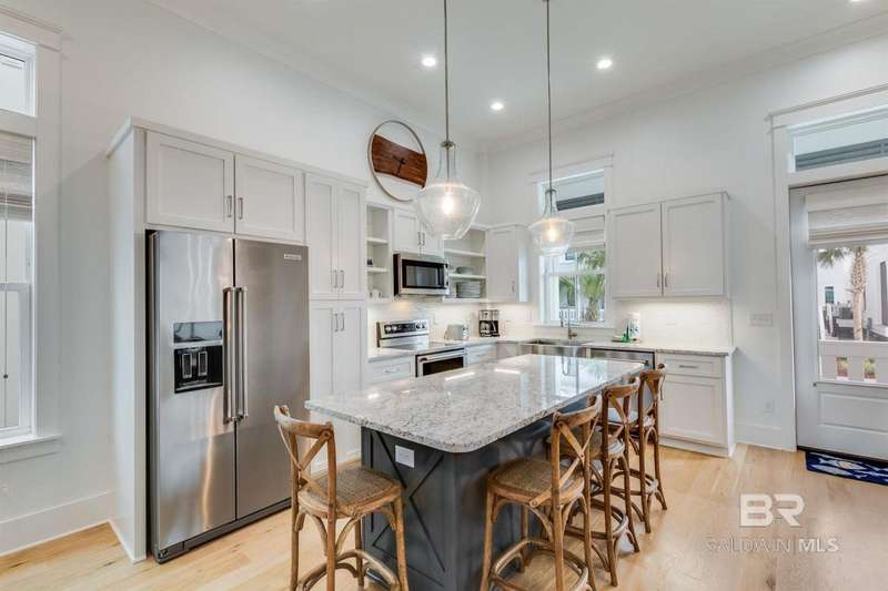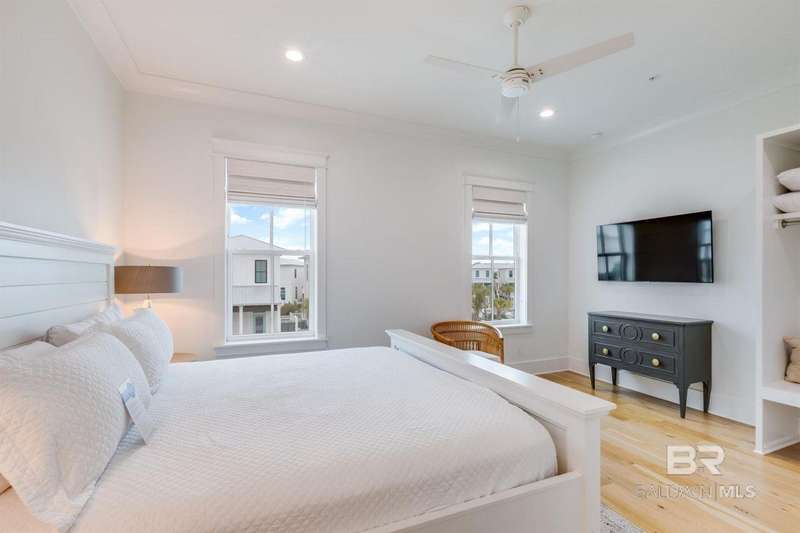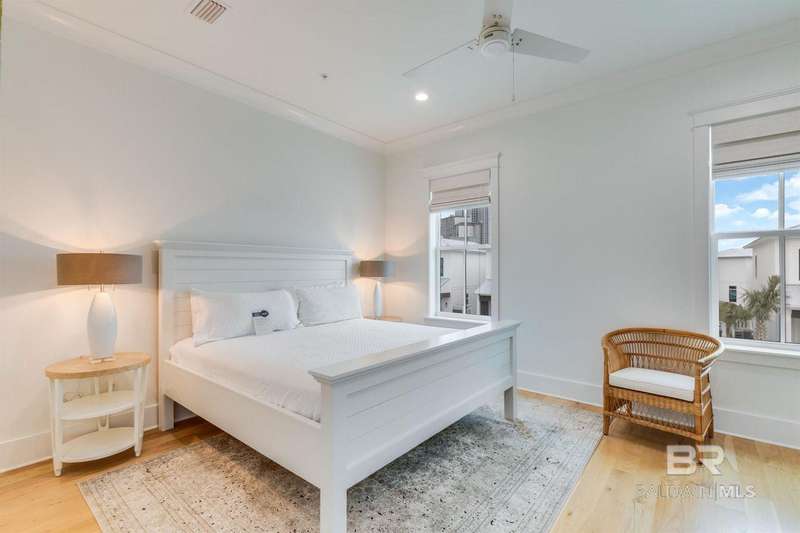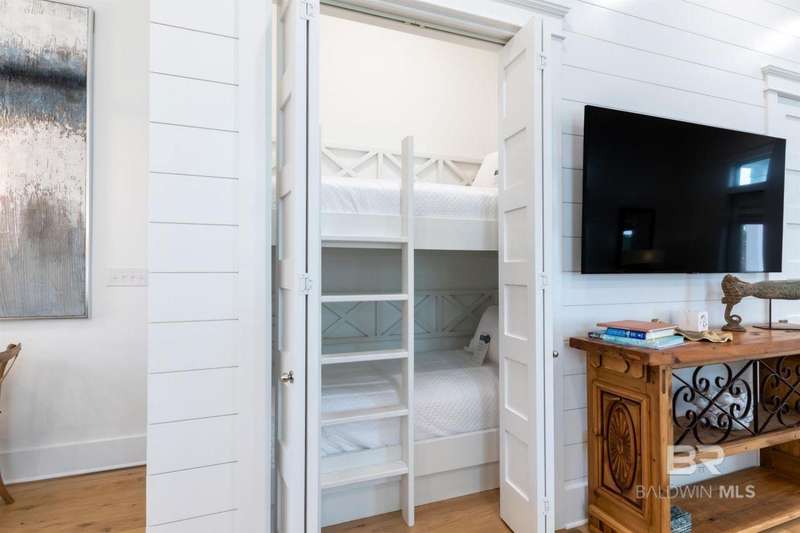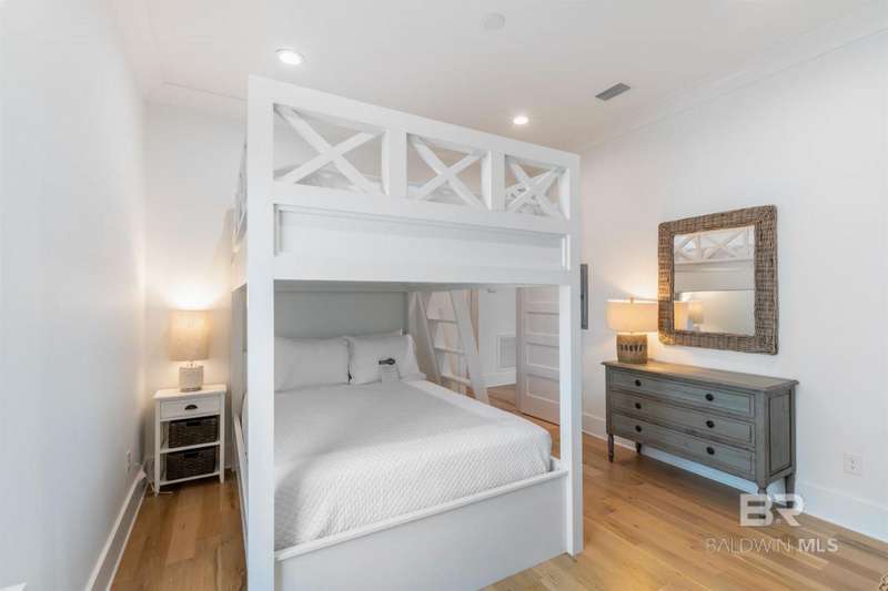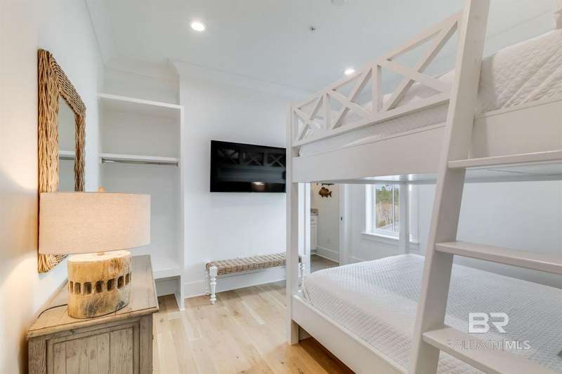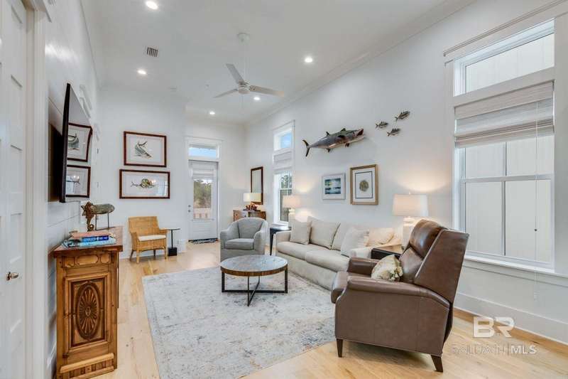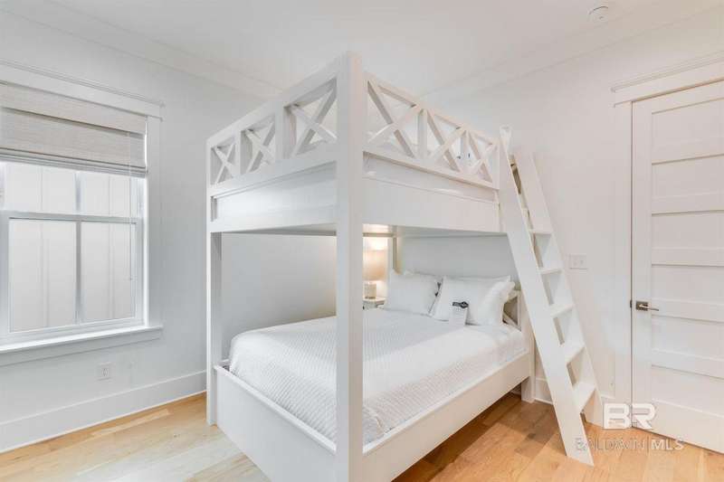 Welcome to Beach Hive 25, a beautifully designed, Gold Fortified cottage located in the gated community of Beach Village Resort, with dedicated beach access. This 2-bedroom, 2.5-bath home, featuring a custom-built bonus bunk area, comfortably accommodates up to 10 guests. Professionally furnished designer selections, it's a turnkey and fully rental-ready. Built with durability and lasting value in mind, the Gold Fortified designation offers homeowners insurance savings and added protection. Inside, enjoy soaring 12-foot ceilings downstairs and 10-foot upstairs. Interior highlights include custom white oak floors, premium stainless steel appliances, custom cabinetry, a built-in whole-house VacuFlow system, transom windows, and comfortable front and rear porches, as well as a private outdoor shower. Whether you're seeking strong rental income potential or a low-maintenance second home, this property offers both lifestyle and investment value. Beach Village Resort amenities include a heated zero-entry pool with a waterslide, private cabanas, and exclusive access to Gulf State Park trails. Buyer to verify all information during due diligence.