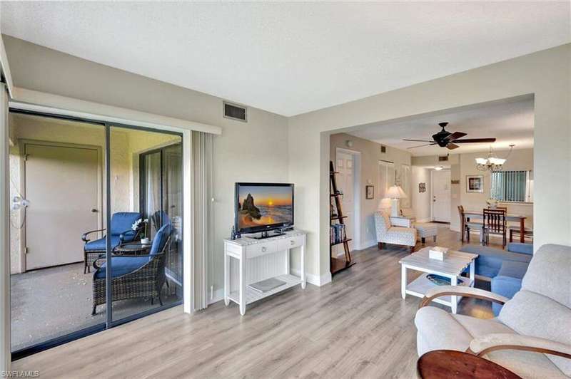 Enjoy Florida living at its best in this updated two-bedroom, two-bath split-plan condo. The open layout and durable vinyl flooring create a clean, modern feel throughout. Relax on your private balcony with peaceful views of the lush Seven Lakes community. This 55+ neighborhood offers resort-style amenities-golf, tennis, pickleball, bocce, shuffleboard, crafts, a woodworking shop, library, and more-all within nearly 200 gated acres. Washer and dryer in-unit, plus dining and entertainment just a short walk away. Move-in ready and perfectly located for year-round enjoyment or a sunny seasonal escape!