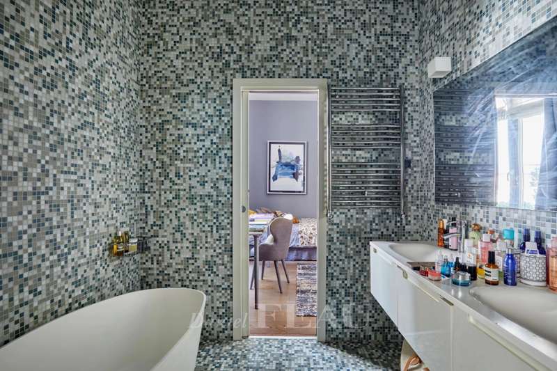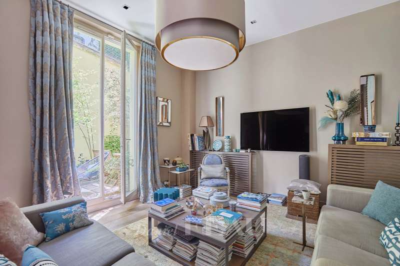 This delightful apartment with the feel of a private home is on the garden level of a prestigious late 19th century building with luxurious common areas and a conciergerie located a stone’s throw from the Bois de Boulogne. Renovated throughout by an interior decorator, it includes a double living/reception room opening onto a leafy 16 sqm terrace, a kitchen/dining room, a master bedroom with a shower room and dressing room, and two further bedrooms sharing a bathroom. With a cellar. The apartment benefits from an optimized floor plan.