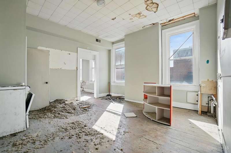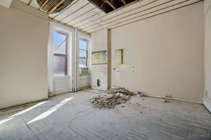 Incredible Investment opportunity, This property has potential for 6, one bedroom units and a commercial space on the first floor. The property has a 30x120 gated off street parking area, enough for 6 vehicles. Recent roof replacement included 2 layers of ice dam, 2 layers of synthetic waterproofing, new box gutters and plywood decking. Property is eligible for $115,000 in Cincinnati City Historic Abatements. Seller has available, City approved architectural plans. There is no current bathroom or bedrooms.