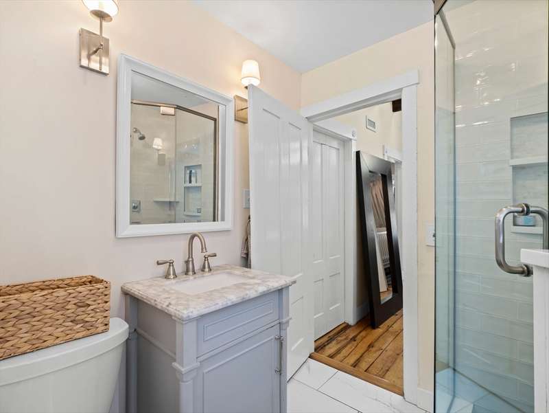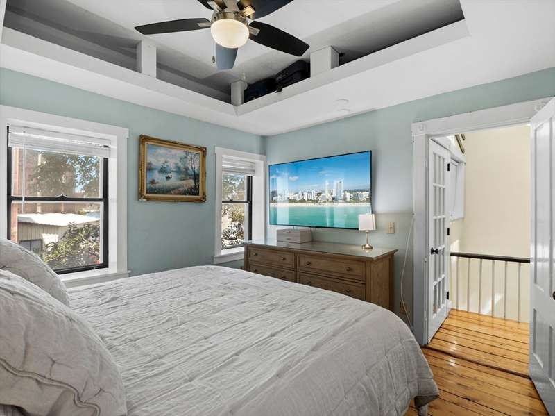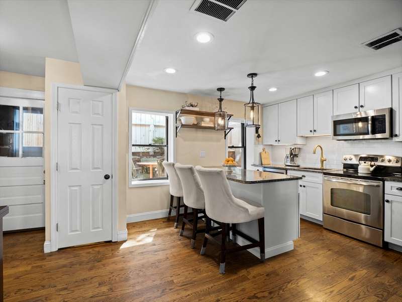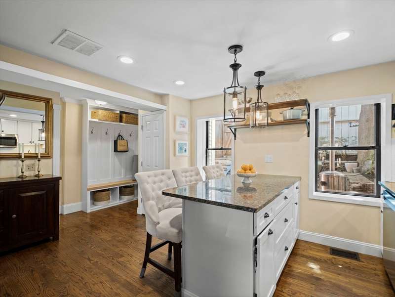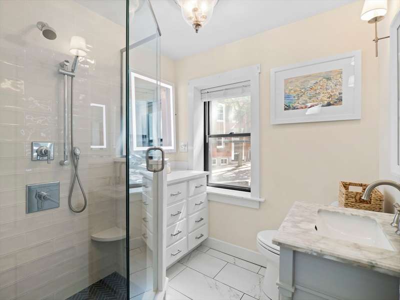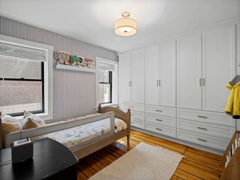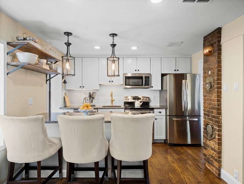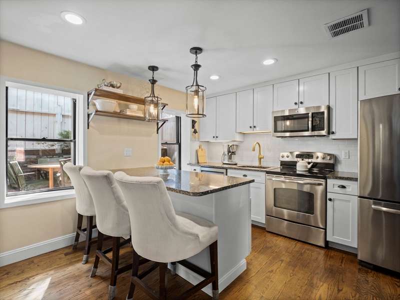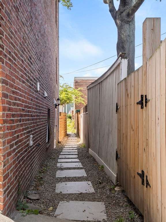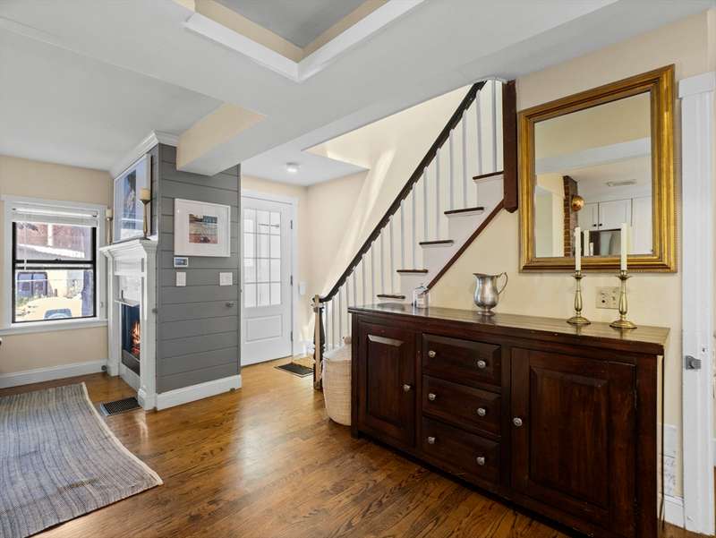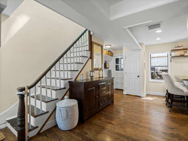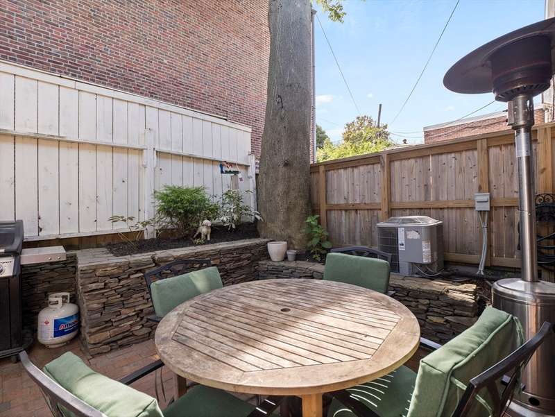 Single-family row house situated on a tree-lined street, with a great walk out patio. The home features hardwood floors throughout, custom built-ins, and a skylight in the foyer that fills the interior with natural light. The open first-floor plan highlights exposed brick accents, a spacious living room with a fireplace, and an updated kitchen with pantry, creating a warm and inviting atmosphere for everyday living and entertaining. Upstairs, you ll find two bedrooms with custom built-ins and ample closet space, plus a dedicated office and a recently remodeled bathroom. The finished basement provides an additional living area, perfect for entertaining, a media room, or play space. A private backyard patio completes the home, offering a welcoming retreat for outdoor dining or relaxation all while being close and convenient to everything Charlestown has to offer.