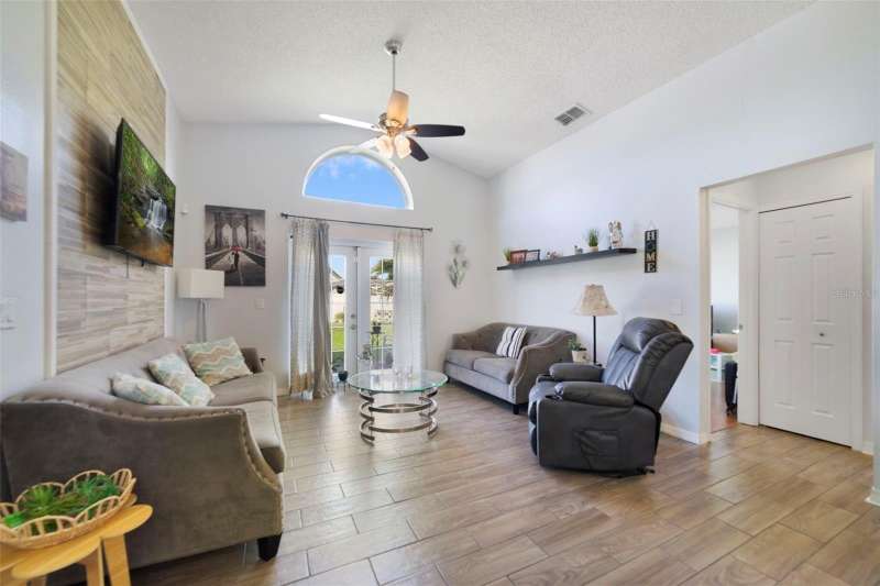 Welcome to Strafford Park, an established community in the heart of Kissimmee with unbeatable convenience, charm and a super LOW HOA! This single story home delivers an easy, OPEN LAYOUT with HIGH CEILINGS and stylish updates throughout. The spacious kitchen features shaker-style cabinetry, STAINLESS STEEL APPLIANCES, a breakfast bar for casual dining or entertaining, and an adjoining dining space – all flowing seamlessly into the living room where French doors open to a FENCED YARD and the perfect blank canvas to create the outdoor space of your dreams. You will appreciate the easy care WOOD LOOK TILE flooring in the main living areas, updated fixtures, and thoughtfully crafted accent walls that give the home a modern, welcoming feel. Your PRIMARY SUITE provides a comfortable retreat with a WALK-IN CLOSET and private en-suite bath, while bedrooms two and three share a second full bath. UPDATES include: the roof in (2017), A/C in (2018), and the WATER HEATER (2021) - adding peace of mind and value. Ideally located near SR 417, Florida’s Turnpike, and Orlando International Airport, with easy access to Lake Nona, shopping, dining, and Central Florida’s world famous theme – this home offers both comfort and convenience in one perfect package. Call today to schedule a tour!