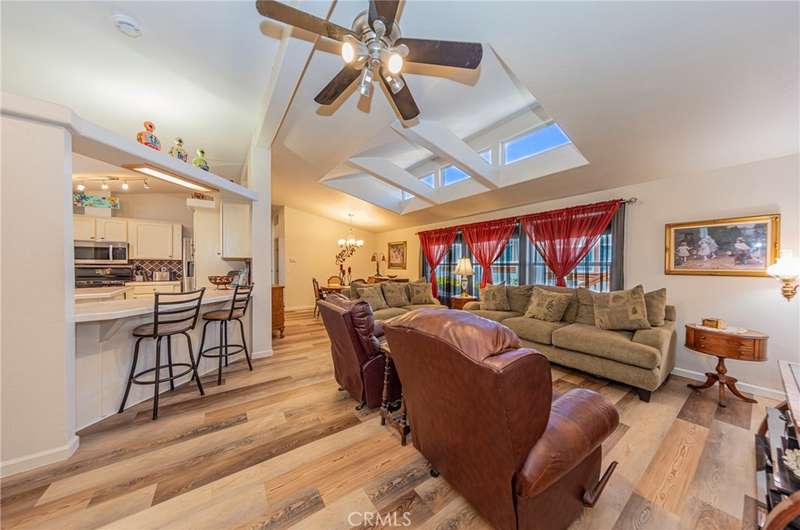 Enjoy the views from the deck! This charming 3 bedroom 2 bathroom home in 55+ pet friendly Community park provides a spacious interior with vaulted ceilings, bonus office/craft room and breakfast bar. Sip your favorite morning beverage on the back deck overlooking the park with a peaceful Mountain View. Enjoy the easy life of no yard and tree maintenance! Plenty of parking in the long carport but visitor parking is also very close by. Oak Creek Manufactured home park has many amenities like a heated community pool, hot tub, fitness center with classes, pickleball court, half court basketball, Shuffleboard, dog park, clubhouse, landscaping, community events, dances and socials, library, coffee bar, free wifi for common areas & RV storage area.