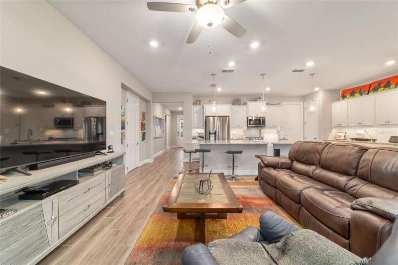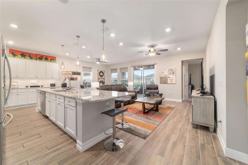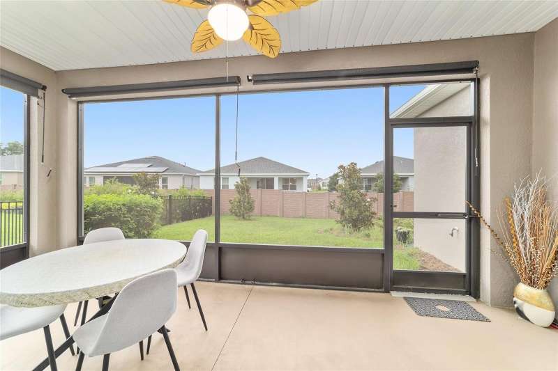 Experience resort-style living at its finest! This pristine 2023 Expanded Connect home is nestled on an active block, with planned activities. Ocala Preserve is known as a golfing community. Besides having golf included, enjoy an unparalleled lifestyle with plentiful and exceptional amenities designed for comfort, connection and an active lifestyle. The lawn maintenance is included in the HOA fees, along with the internet and curbside trash removal. As a former model home, this home boasts modern selections and beautiful upgrades to an already well-appointed home. Luxury living is the best way to describe this 3-bedroom, 2.5-bathroom, plus den home. The open floor plan creates an inviting living space for both entertainment and everyday relaxation. The gourmet kitchen anchors the home with a show stopping stone island, designer subway-tile backsplash, modern cabinetry, under-cabinet lighting, stainless-steel appliances, along with gas stovetop. The primary suite features an en suite equipped with a walk-in shower, a gorgeous dual-sink, extra-long vanity, and a spacious walk-in closet (unable to show in pictures). This floor plan offers an additionally, private and versatile flex room, den or office. In the pictures, it is the room without any furniture. The split floorplan positions the 2 guest rooms, full bathroom and an additional half bathroom in the front of the home, providing privacy for overnight guests. Enter the home, from the speckled epoxy floored 2-car garage, into an oversized laundry room and drop zone, equipped with a utility sink. The sliding glass doors lead to the screened lanai, perfect for relaxing and enjoying the outdoors. For added privacy and shade, the lanai has roll down shades and the backyard has a privacy/buffer wall. The backyard could be fully fenced quite simply. To further add to the warmth and sophistication of this designer home, the following are present: abundance of recessed lighting, elegant, cordless blinds on all windows, sliding door remote controlled shade, wood inspired tile floors, gutters and solar panels to keep your energy bills low. Close to shops, restaurants and medical facilities. Minutes to the World Equestrian Center (WEC), the interstate and lively Downtown Ocala. Take a moment to preview the pictures, then call to schedule your in-person showing. Obtain the finest Florida Lifestyle in this stylish Sanctuary!
