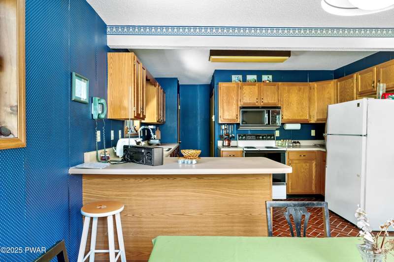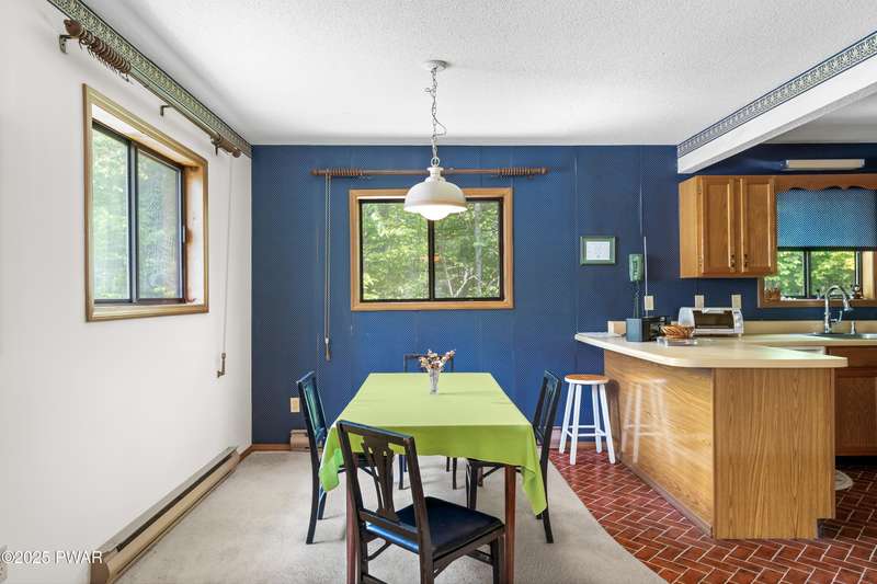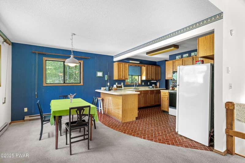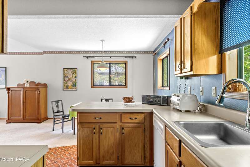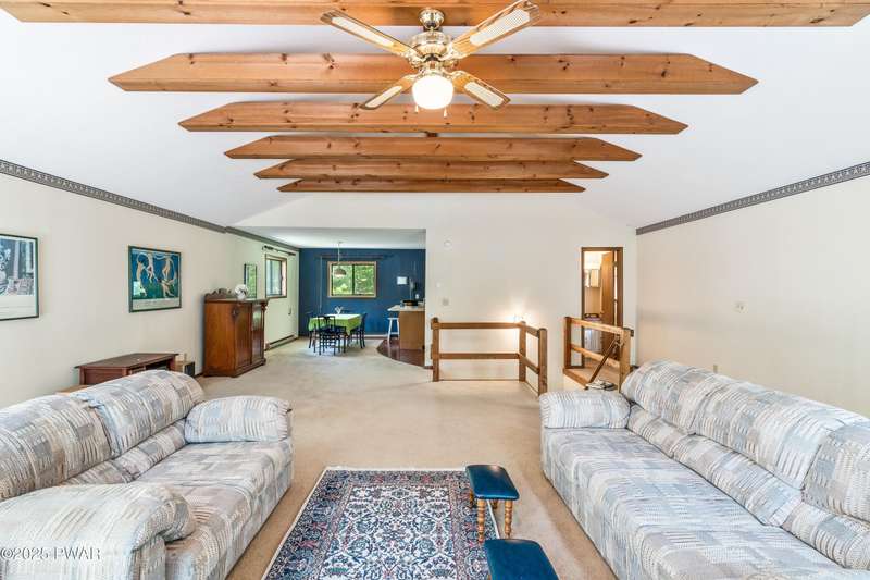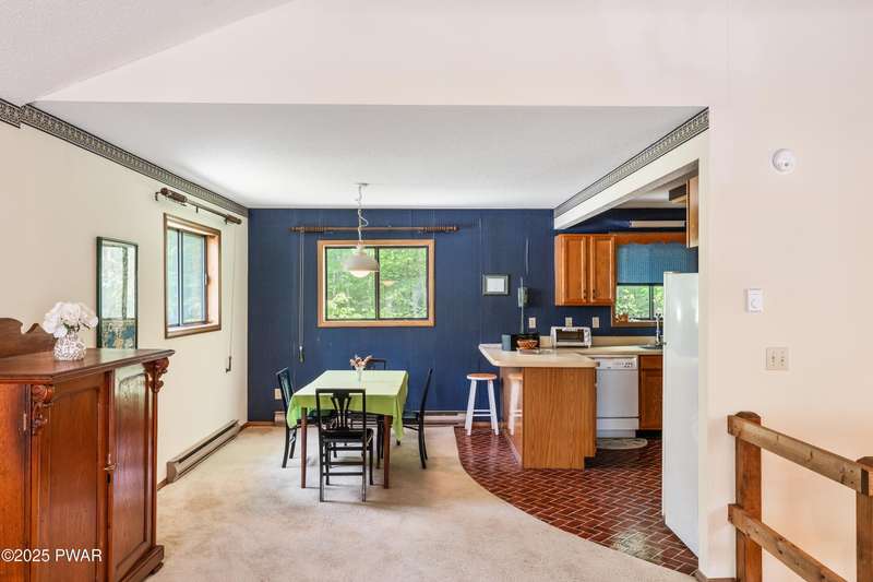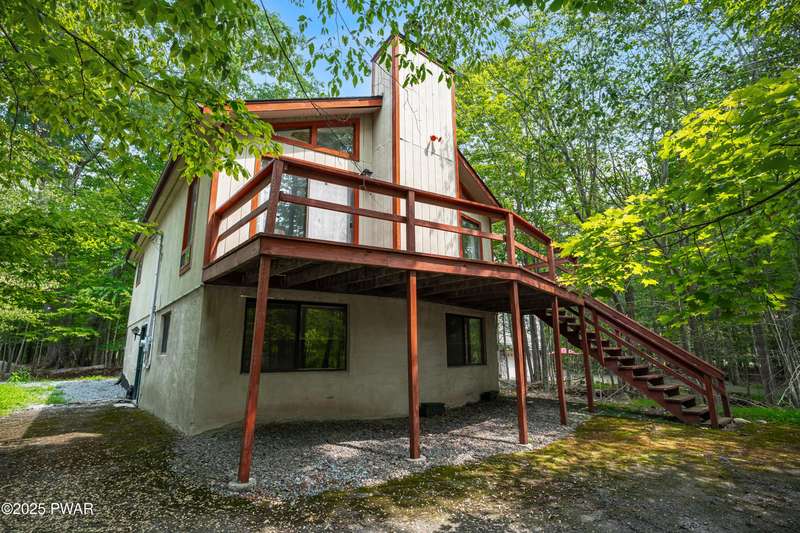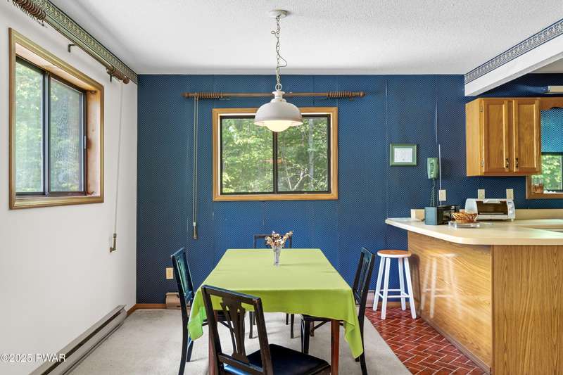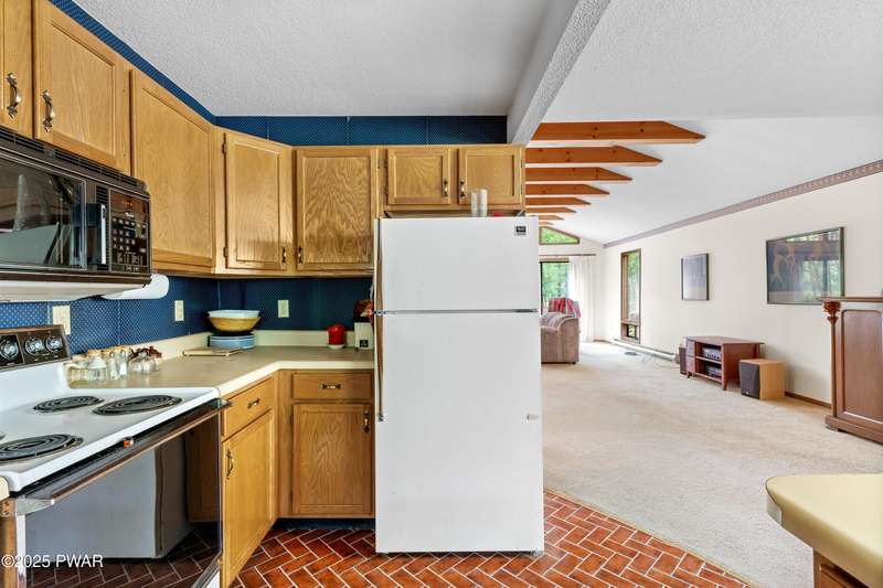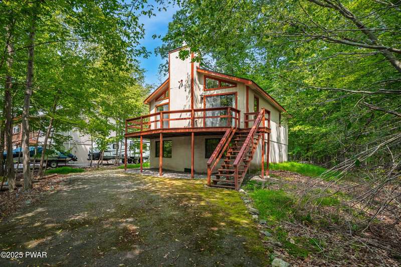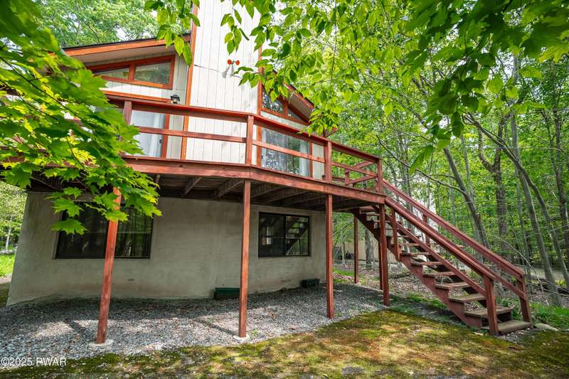 Discover your retreat in the amenity-filled community of The Hideout! This charming home offers a warm and inviting layout with vaulted ceilings, exposed beams, and a brick fireplace as the centerpiece of the spacious living room. Large windows and sliding doors flood the home with natural light and open to an expansive deck, perfect for entertaining or relaxing among the trees.The kitchen features ample cabinet space, a breakfast bar, and flows into the dining area for easy gatherings. With 2 bedrooms and 2.5 bathrooms, this home has plenty of room for family and guests. Bedrooms are generously sized, and the bathrooms carry a touch of vintage charm, offering the opportunity to update to your taste.Set back on a wooded lot, this property provides privacy while still being part of a community with endless amenities, lakes, pools, golf, skiing, tennis, fitness center, and more. Whether you're looking for a full-time residence, vacation home, or investment property, this home delivers the perfect blend of comfort, character, and potential.