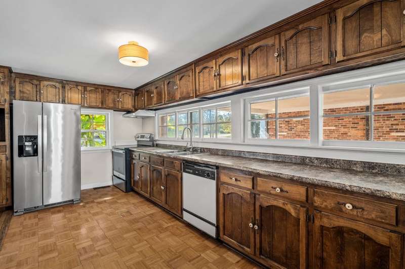 Discover a spacious and character-filled Lakewood home tucked onto a quiet, tree-lined corner lot just steps from the Greenway and minutes from Old Hickory Lake. With quick access to water recreation and an easy drive to downtown Nashville, this location offers a rare blend of convenience and outdoor living. Originally built in the 1930s and thoughtfully expanded in the 1980s, this home offers the kind of square footage that's increasingly hard to find at this price point in Davidson County. Inside, the flexible layout adapts to your lifestyle-four bedrooms, a generous kitchen with a built-in banquette, a huge den with a wood-burning stove, and additional rooms ideal for working from home, a second living area, dining, hobbies, or play. Move-in ready with plenty of room to personalize and update at your own pace. Outside, mature trees frame a peaceful courtyard with a patio, fishpond, and play space, along with a roomy carport and a large all-brick detached two-car garage/workshop. Major improvements include brand-new roof on both the home and garage (2024), fresh interior paint, and a new water heater. Homes with this much space, character, and location value rarely come on the market. Seller prefers as-is offers but welcomes inspections. Home is in the Stanford Montessori Geogrpahic Priority Zone.