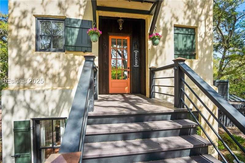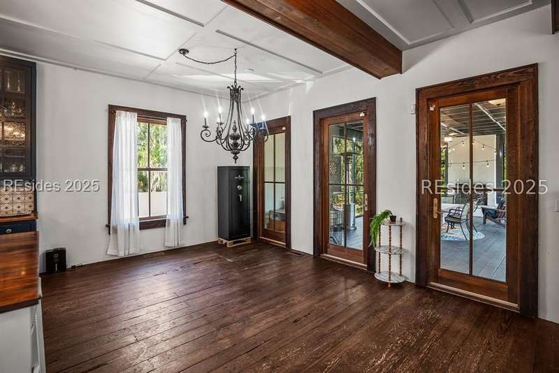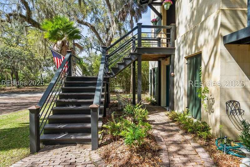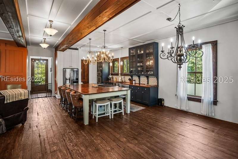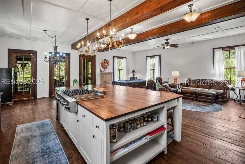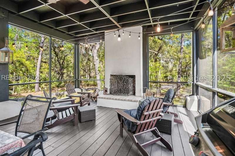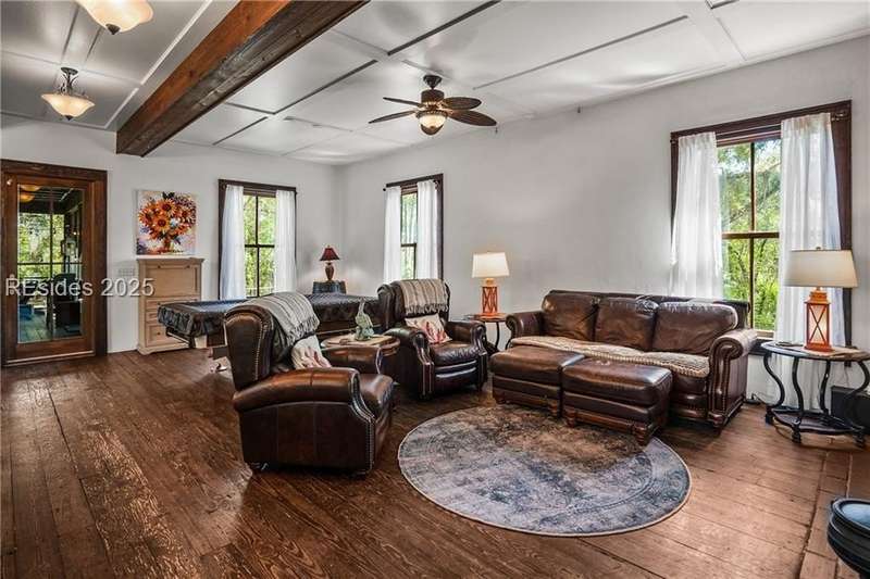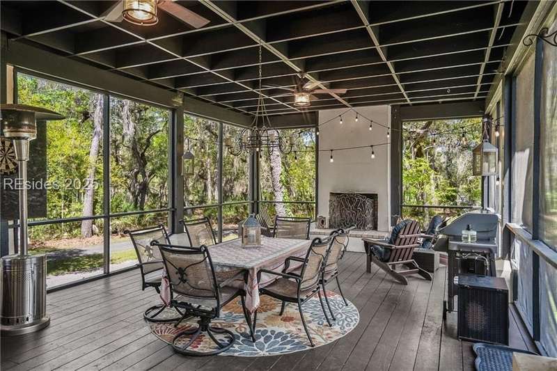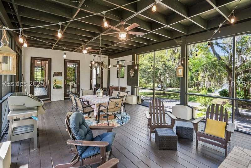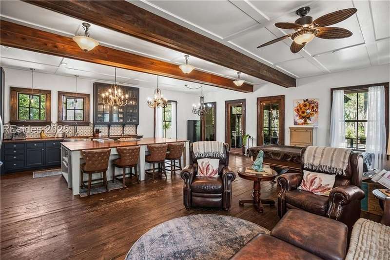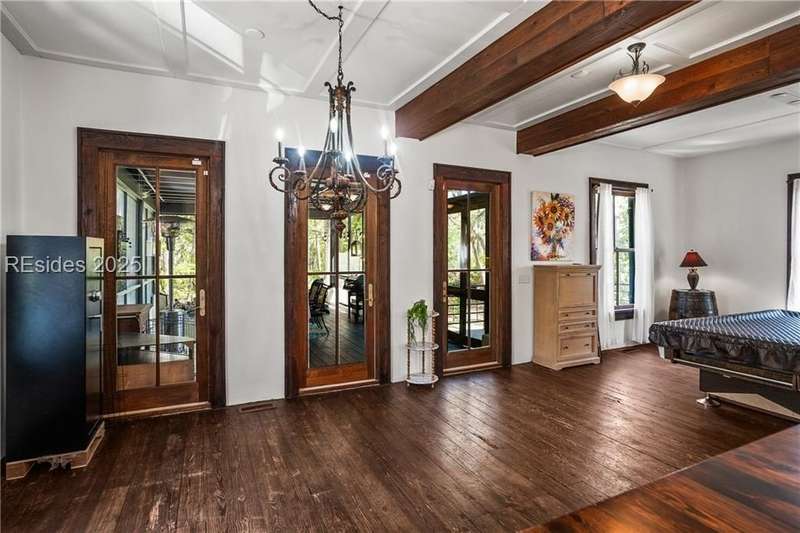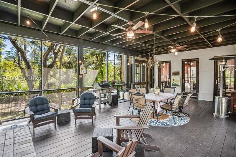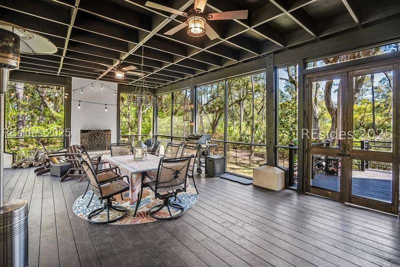 This one-of-a-kind home is a nature lover's dream & a MUST SEE! Hidden between the Live Oaks of Dolphin Point on Cat Island, you'll find this eclectic, four-story home featuring reclaimed heart pine floors, exposed wooden beams & nearly 2,000 square feet of porches perfect for Lowcountry living. The estate features tons of natural landscapes, wooded & pond views, gardens, & living fenced in yard. Wind down on the giant screened-in porch w/ wood-burning fireplace, listen to the rain hit the metal roof or relax in the free-standing soaking tub just off the owner's suite. Open concept 5 bedroom, 4 ½ bath home w/ gourmet kitchen.
