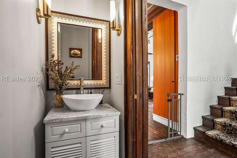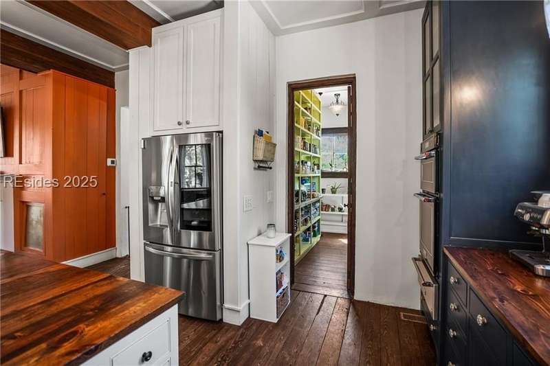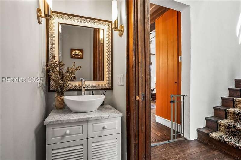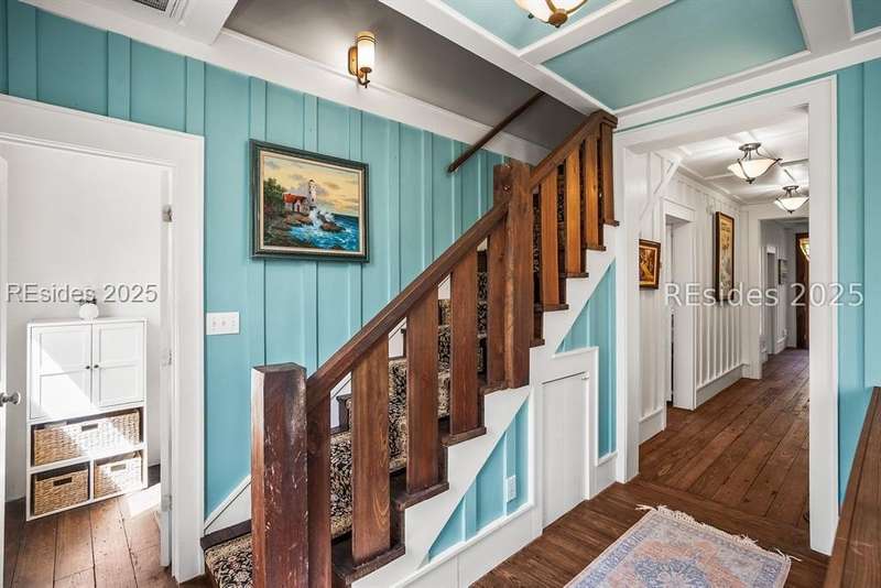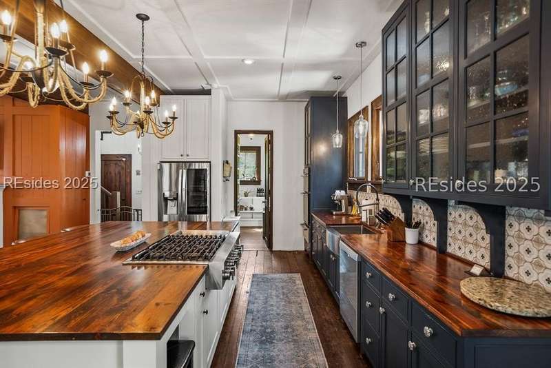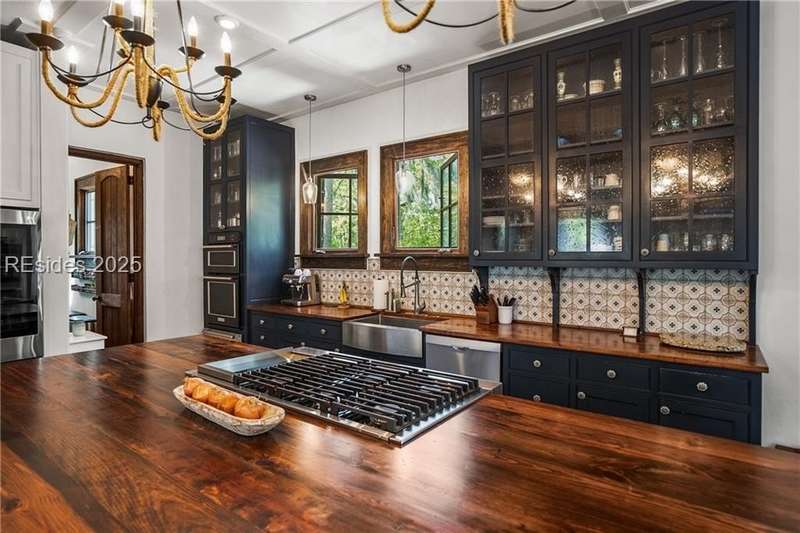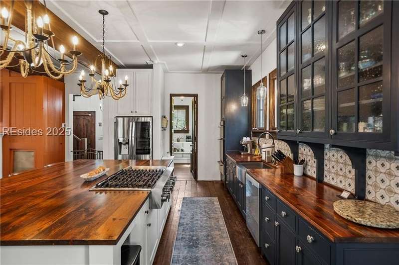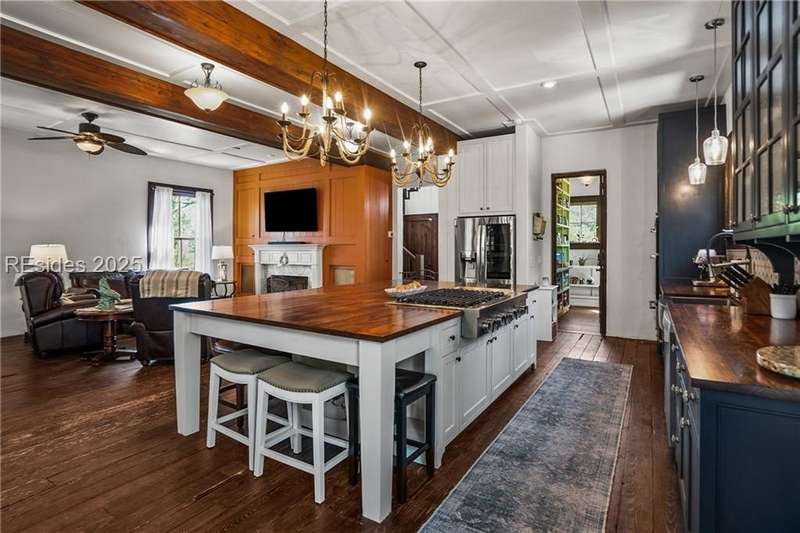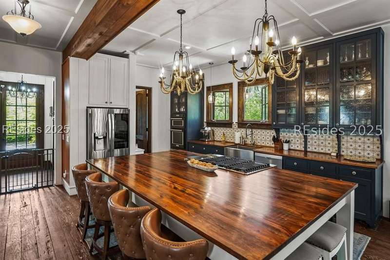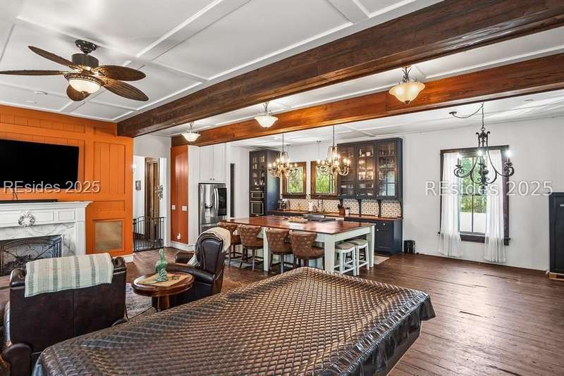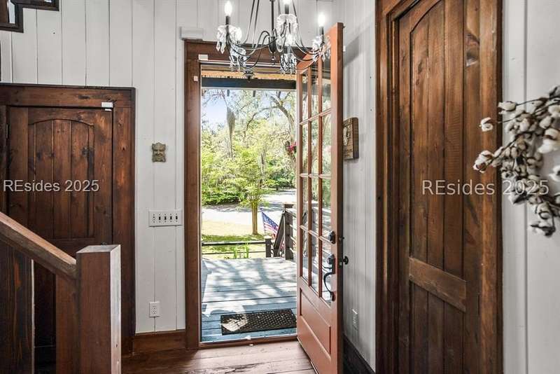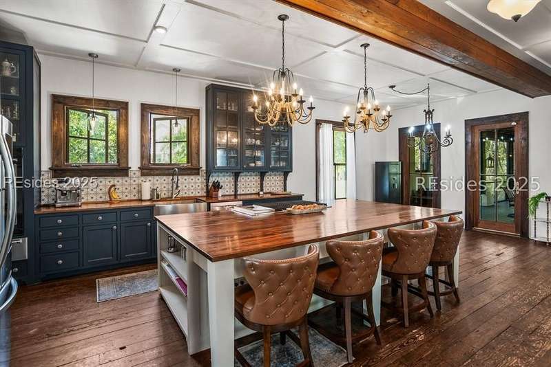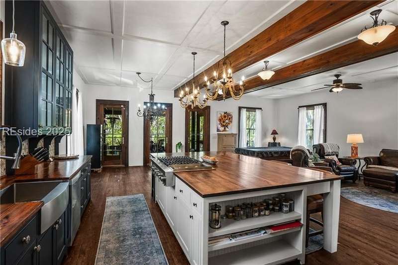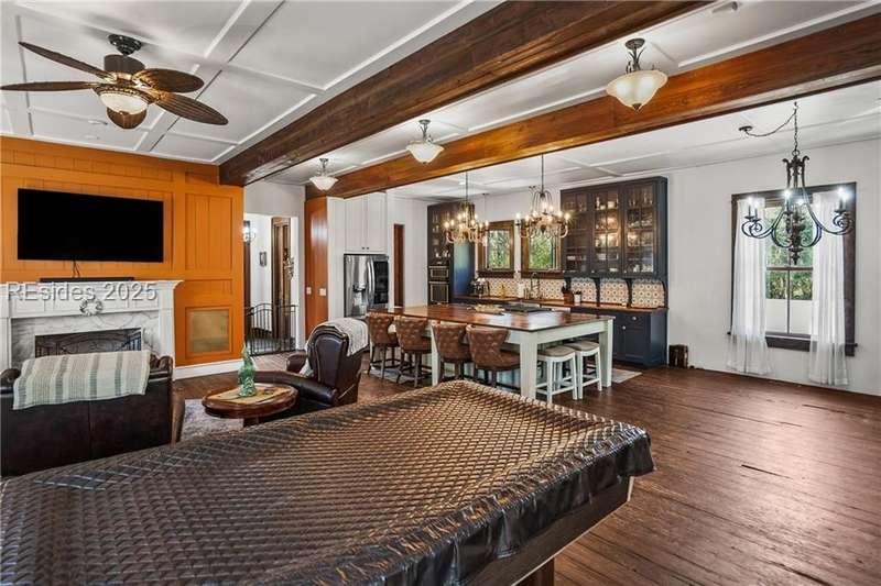 This one-of-a-kind home is a nature lover's dream & a MUST SEE! Hidden between the Live Oaks of Dolphin Point on Cat Island, you'll find this eclectic, four-story home featuring reclaimed heart pine floors, exposed wooden beams & nearly 2,000 square feet of porches perfect for Lowcountry living. The estate features tons of natural landscapes, wooded & pond views, gardens, & living fenced in yard. Wind down on the giant screened-in porch w/ wood-burning fireplace, listen to the rain hit the metal roof or relax in the free-standing soaking tub just off the owner's suite. Open concept 5 bedroom, 4 ½ bath home w/ gourmet kitchen.