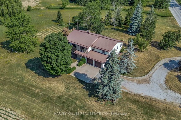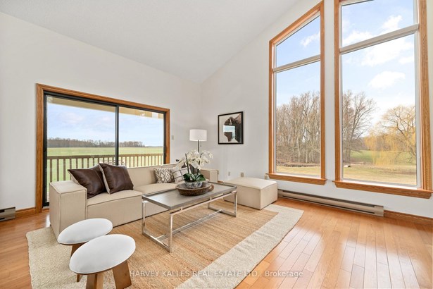 Tucked away on 3.7 picturesque acres, this beautifully maintained 4-bedroom, 3-bathroom home offers the perfect blend of space, charm, and potential just a short drive to Wellington and the best of Prince Edward County's wineries, restaurants, and beaches. From the moment you arrive, you'll be captivated by the pastoral setting, complete with rolling farm fields, a tranquil stream, a peaceful pond, and your own pocket of woods all visible from the large living room and multiple outdoor spaces. Inside, the home offers generous room to live, work,and entertain. The spacious kitchen includes a separate dining nook and walkout to a large deck, while a formal dining room provides space for special gatherings. The sunlit living room with vaulted ceilings features a cozy wood stove and balcony with elevated views of the surrounding countryside. The walkout lower level expands your options with a large family room, second wood stove, office, fourth bedroom, full bath, and an oversized laundry room that could easily be converted into a second kitchen making this level ideal for an in-law suite or income-generating rental. Practical features like a durable metal roof, attached 2-car garage, and multiple outdoor living spaces including a side patio, deck, and balcony make this home as functional as it is beautiful. Whether you're looking for a full-time family home, a multi-generational setup, or a property with income potential, this countryside gem delivers space, serenity, and versatility in equal measure.