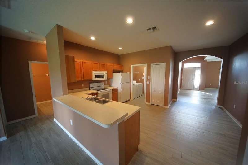 Nestled at the end of a quiet cul-de-sac, this charming three-bedroom, two-bathroom residence offers comfort, space, and timeless appeal. Upon entering the expansive foyer, you are immediately greeted by the formal living and dining rooms-perfect for entertaining guests or enjoying quiet evenings at home. These gracious spaces flow seamlessly into a generous eat-in kitchen, thoughtfully designed to accommodate both casual meals and culinary creativity. The home boasts a desirable split floor plan, ensuring privacy and functionality. On one side, you'll find a spacious master retreat complete with a large walk-in closet and room for a sitting area or reading nook. On the opposite side of the home, two additional bedrooms share a well-appointed full bath, making it an ideal layout for families, guests, or a home office setup. Step outside to a screened-in patio that offers the perfect spot to unwind while enjoying views of the expansive backyard.The seller has replaced the Air Conditioner, Water Heater and Added a Home Water Filtration Unit all within the last 3 years. All flooring throughout the property has been replaced with tile flooring in 2022.