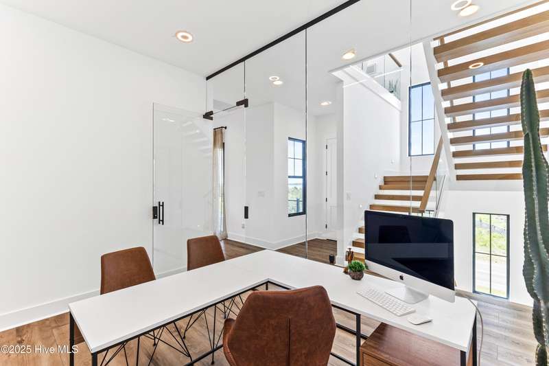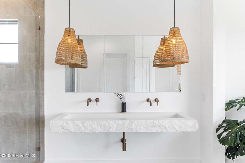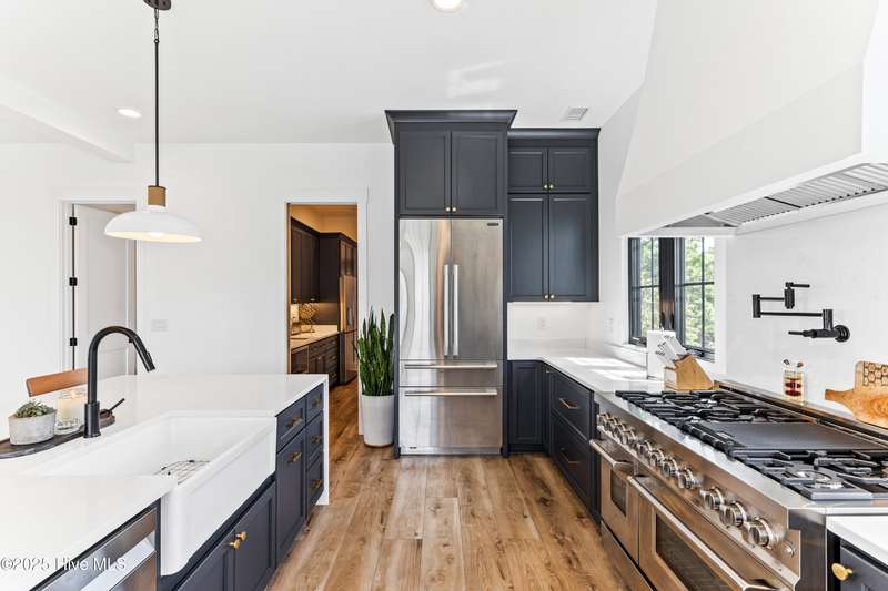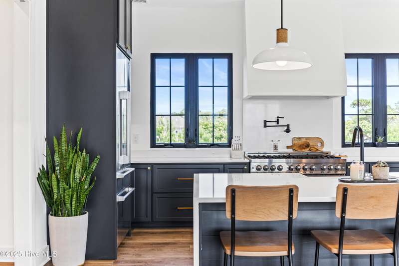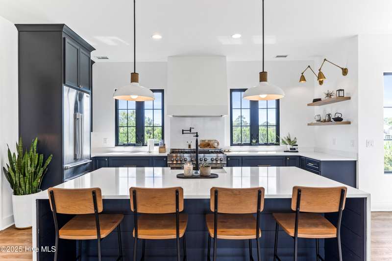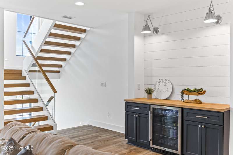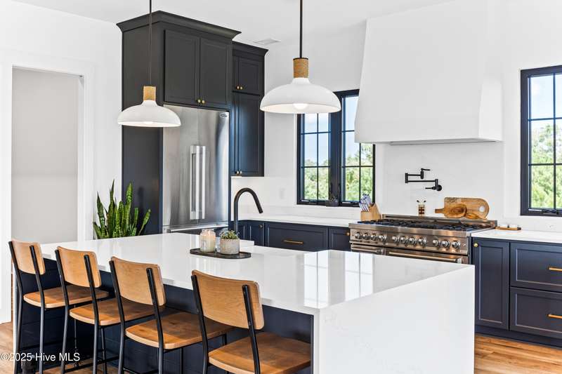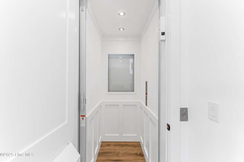 Imagine gliding home along River Road at golden hour, the Cape Fear River blazing with color as your 4-Story modern masterpiece appears. Clean lines, copper flashes, and railings catching every ray. Press a button and the hydraulic elevator lifts you from the epoxy finished 3 bay garage to the main level, where 10 ft ceilings and floating white oak stairs frame and unobstructed river panorama. Dinner simmers on a 48'' ZLINE dual-fuel range while conversation flows around the quartz waterfall island. A built in Signature Suite Fridge, twin beverage coolers, Samsung AirDresser and reverse-osmosis prep sink keep everything (and everyone) perfectly refreshed. Slide open DP-Rated glass walls and the porch transforms into an al-fresco lounge lit by fiery skies and a 62'' linear fireplace. Upstairs, the primary retreat rivals a boutique spa: 70'' limestone soaking tub, wall mounted bidet, remote shades, custom closet and a ocean-quiet Carrier HVAC- one of three zoned systems paired with a whole house dehumidifier, six smart thermostats, and a full water filtration. Two additional guest levels offer dry bars, a glass-walled office with gigabit wiring and a rec room cooled by a 20-SEER mini-split. Outside, marine grade cable rails, Duxxbak decking, stamped concrete, and a hot and cold shower stand up to salt and sun, while a 22 kw Generac generator, 500 gal propane tank, and 400 amp service keep life seamless. PGT impact windows, standing seam metal roof, fiber cement siding and copper flashing promise decades of low maintenance luxury. Bonus: There is an additional lot that can be purchased next to the property- perfect for a pool and/or a 1 bedroom accessory dwelling or in-law suite, making this already rare offering even more exceptional. There's nothing like it on the market. Schedule your private sunset tour today!