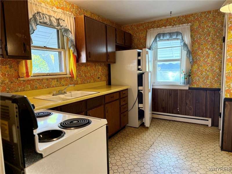 Vinyl sided cape cod on an extra deep double, fenced lot with a 2.5 car detached garage & shed. Eat-in kitchen includes electric stove & refrigerator. Large living/dining room combo has hardwood floors that have been covered by carpeting for many years. Two 1st floor bedrooms with hardwood floors. Additional square footage of 504 sq ft is from finished 2nd floor, not included in tax records, as measured by architect. Second floor does not have a closet but has its own thermostat. Newer Hot Water Tank. Generator. Please do not turn on bathroom faucet - it drips.