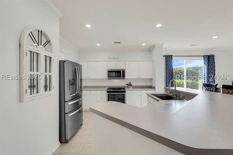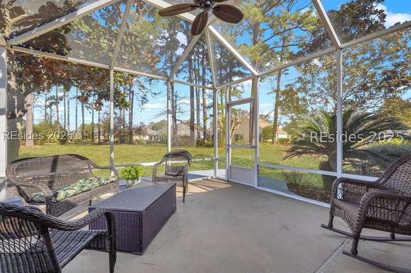 Enjoy serene views of the 8th green of the Okatie Creek golf course from this beautifully upgraded 3BD/2.5BA Charlotte Madison home in Sun City. Featuring an open-concept floor plan, this home offers a spacious great room, dining area & a Carolina room w/custom built-ins, perfect for relaxing or entertaining. The kitchen is well appointed w/stainless steel appliances, gas range & spacious pantry. Additional highlights include an oversized garage for extra storage, vinyl siding, smooth ceilings & bay windows in both the primary and guest bedrooms. This very private homesite is conveniently located b/w Town Square & Hidden Cypress.