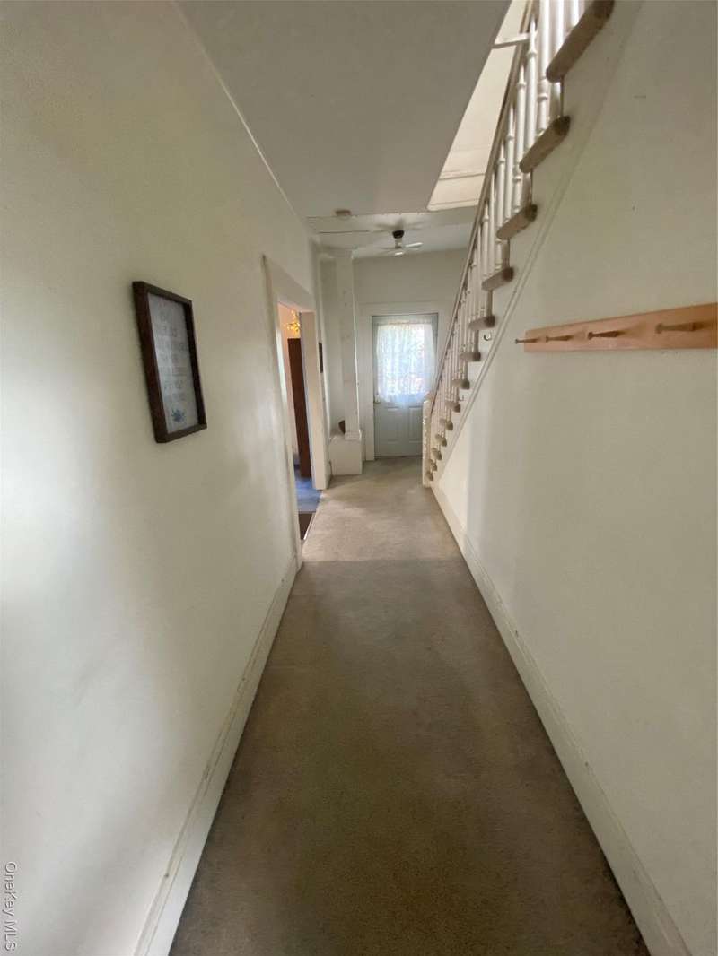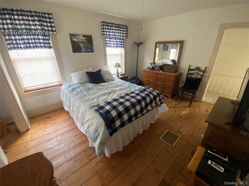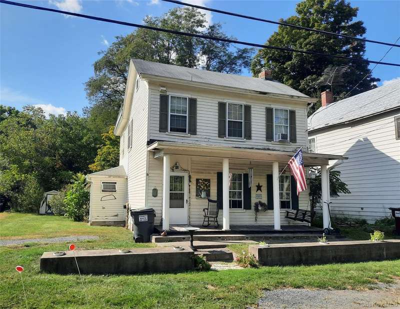 Quaint Village of Unionville home in the Minisink Valley School District. This three bedroom home has an eat in kitchen, formal dining room and spacious living room on the first floor. The kitchen has a small pantry and the washer and dryer as well. There is a small storage room that leads to the back door and yard. Upstairs you will find three good sized bedrooms and a full bathroom. There are pull stairs to the attic. In addition, there is a closet plus a small room that could be a home office. There's a full unfinished basement. With some TLC this home can really shine.