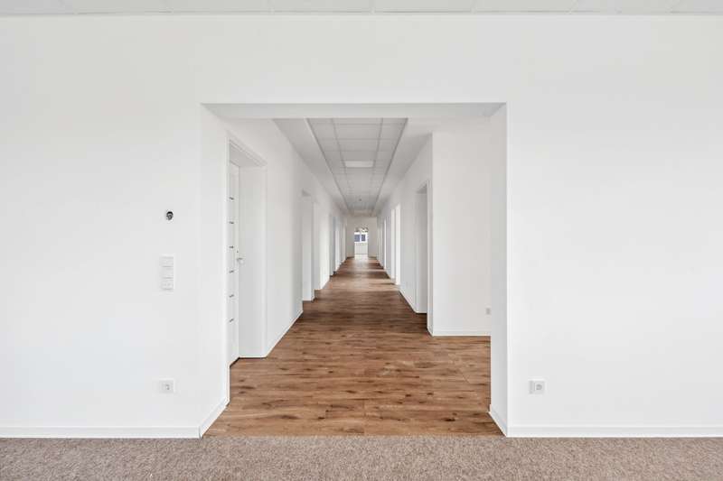Completed in January 2024, the commercial property offers six high-quality and flexible units that enable modern working at the highest level. The unit on the first floor (right) is currently available to let - a prestigious location for companies that value quality, functionality and an attractive environment. Room layout: This well-designed office unit impresses with its functional room structure and bright, friendly work areas: Reception: approx. 14.58 m² - Representative entrance area for customers and guests Meeting room: approx. 23.10 m² - Ideal room for internal meetings or customer discussions Conference room: approx. 40.51 m² - Generously sized room for presentations and workshops 6 offices: approx. 15.39 m² each - Flexible use for individual or team workstations Kitchenette: approx. 7.06 m² - Modern kitchen for breaks and short meetings Technical room: approx. 7.37 m² - For servers, IT or building services Copy room: approx. 4.02 m² - Separate area for printing and copying technology PuMi (cleaning materials room): approx. 2.96 m² - Practical side room for storing cleaning materials Special features: The unit on the first floor has barrier-free access and offers versatile usage options - ideal for companies from the consulting, service, administration or healthcare sectors. The high-quality furnishings, light-flooded rooms and the quiet yet central location round off the offer. Conclusion: This furnished office unit in Verden an der Aller offers ideal conditions for modern working. Whether as a prestigious company headquarters or an efficiently organized location - here you will find space for growth, communication and productivity. Subletting is also possible. Contact us: We will be happy to provide you with further information or arrange a viewing appointment. Discover the potential of this special property for your company!
