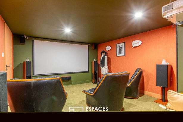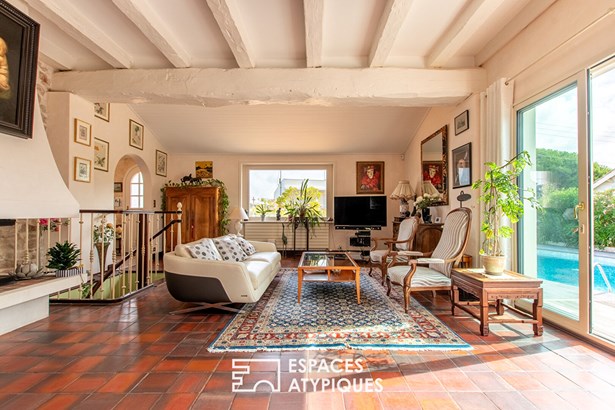 The interior layout is spread over two levels. The entrance is both on the ground floor and the upstairs terrace, ideal for welcoming family and friends. The ground floor offers two bedrooms, a bathroom, and a cinema room. Upstairs, the vast living room with fireplace opens onto the sunny terrace with the suspended pool and extends harmoniously towards the semi-independent kitchen, ideal for combining conviviality and functionality. Three bedrooms, including a master suite, and a bathroom complete this level. A light-filled winter garden, perfect for an office or for plant lovers, adds a unique touch. A laundry room, cellar, and double garage complete the amenities, while an intimate patio closes the rear of the house. A rare and confidential property, a stone's throw from the ocean, where volumes, a raised swimming pool, and multiple living spaces create a unique living space on the Sables-d'Olonne coast. Very well located for walking to local shops and the beach.