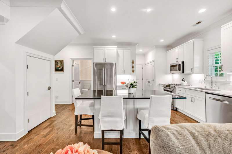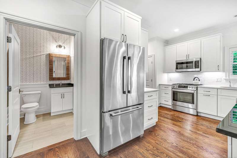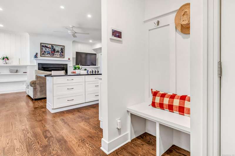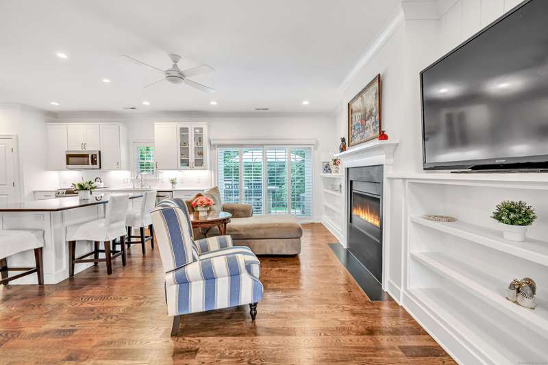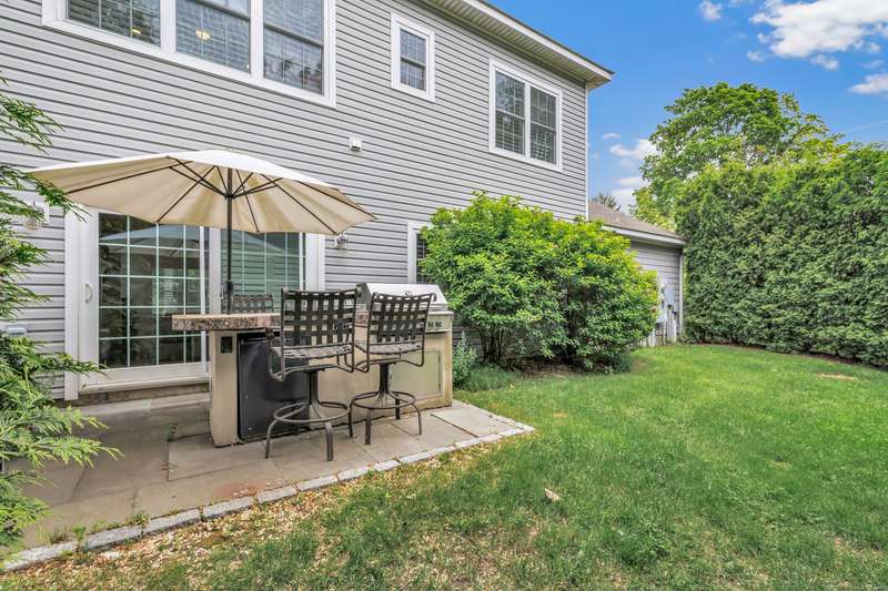 Welcome to this like-new, end-unit townhouse offering a blend of timeless elegance and modern comfort, all within walking distance to downtown Fairfield, the train, and beautiful Jennings Beach. This 3 bedroom, 3 full bathroom home is filled with natural light and thoughtfully designed with custom high-end finishes throughout, including shiplap accents, designer lighting and plantation shutters. An open-concept layout includes an expansive gourmet kitchen featuring an oversized 68" granite island with seating and stainless steel Bosch appliances, leading to the living room with a gas fireplace, built-ins and shiplap detailing. The living area flows seamlessly to a private, partially fenced-in backyard with almost .25 acres, a bluestone patio, outdoor kitchen, and lush gardens. The flexible main floor offers a bedroom and full bathroom, perfect for visiting guests, while upstairs boasts a spacious primary suite with custom walk-in closet and luxurious bathroom, plus another bedroom, ful
