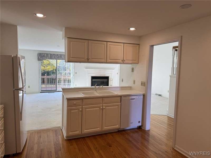 Fantastic townhome offered by original owner! Lovingly cared for! Super location on outer loop of Southwick, backing to woods for privacy. Spacious living room with cathedral ceiling & gas fireplace, dining room has sliders to deck & private yard. Bright white kitchen with double pantry (could be laundry), fully applianced including washer & dryer. Primary bedroom has two double closets, sky-lit bath. 8 ft.. basement, HWT - 2013; A/C within 5 years. Beautiful unit - don't miss this one!