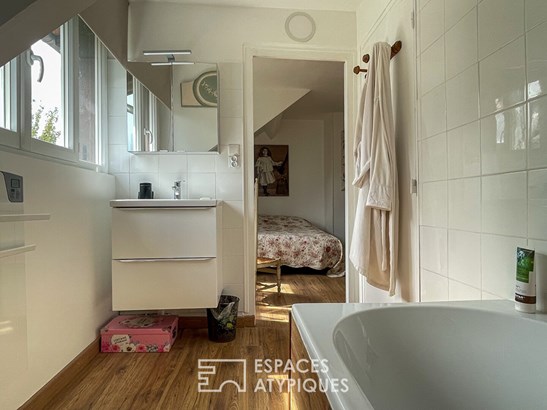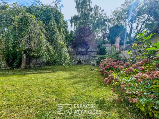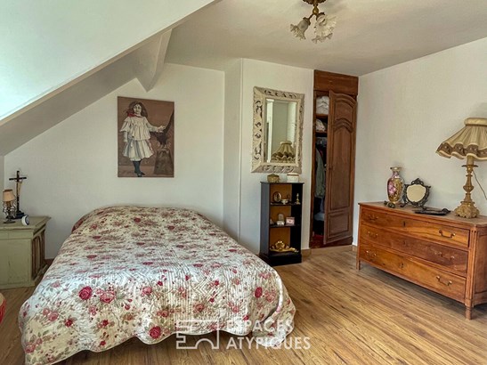 The upper floor leads to a landing leading to two cozy bedrooms and a bathroom. Outside, the terrace opens onto a lush, secluded garden, ideal for moments of tranquility. The land is fully enclosed and allows you to park up to 3 vehicles. With its outbuildings, including a second house to renovate, the development potential is immense.