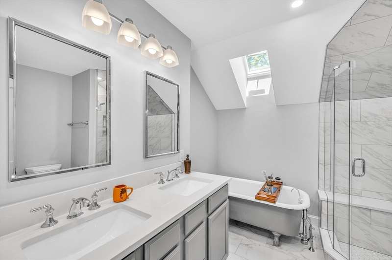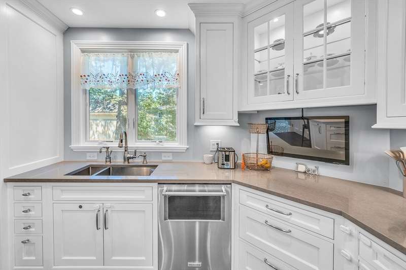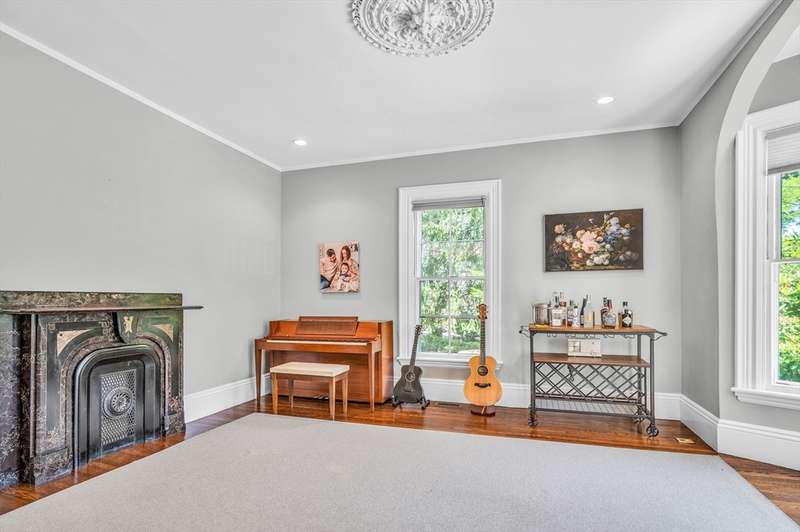 This beautifully renovated 1880 Victorian blends historic charm with modern comfort. Original details like ceiling medallions and arched doorways meet recessed lighting, radiant heated floors, and soaring 9'7" ceilings. Spacious rooms and bay windows enhance both family living and entertaining. The chef s kitchen features Wood Mode custom cabinetry, high-end appliances including an induction stove and bonus fridge drawers and a large island perfect for gathering. A mudroom with heated floors and a main-floor bath add everyday convenience. Upstairs, the primary suite includes a luxurious bath with a clawfoot tub and custom closet. Two additional bedrooms, a marble full bath, and laundry complete the upper level. Sited on 13,000 sq.ft. lot surrounded by lush trees this home has a lovely yard a 1+car garage, EV charger. A commuter's dream: easy access to the Riverside T, I 95 the Pike. Near Lasell University + Newton Wellesley Hospital. Williams Elementary, Brown Middle, Newton South.