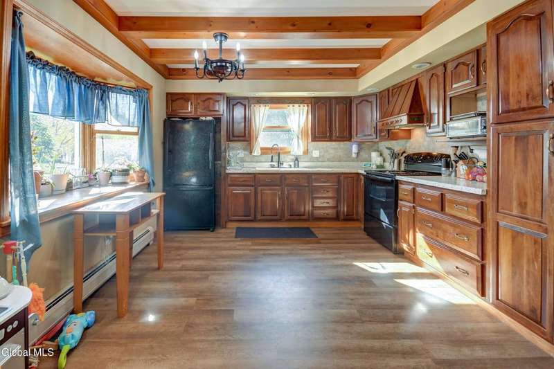 Don't miss this amazing opportunity to own a beautifully maintained and thoughtfully updated home on a spacious .77-acre lot in the Johnstown School District! The first floor features a large eat-in kitchen with custom cabinetry and a butler's pantry, formal dining room, spacious living room, and full bath ? all with radiant heat. NEW pellet stove with thermostat installed which will heat the whole house!! Upstairs offers three comfortable bedrooms and an additional full bath. Highlights include exquisite hardwood floors and woodwork, replacement windows, and efficient 3-zone heating. The basement provides ample storage and laundry area. Enjoy the professionally landscaped grounds with a circular driveway, charming ''she shed,'' multiple utility sheds, and a 2-car garage with loft and heated Rec room perfect for a pool room or exercise room. This exceptional property is in excellent condition and ready for its next chapter!!