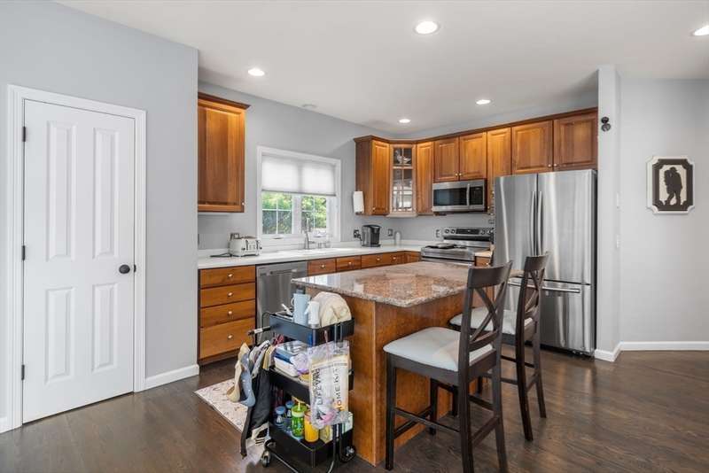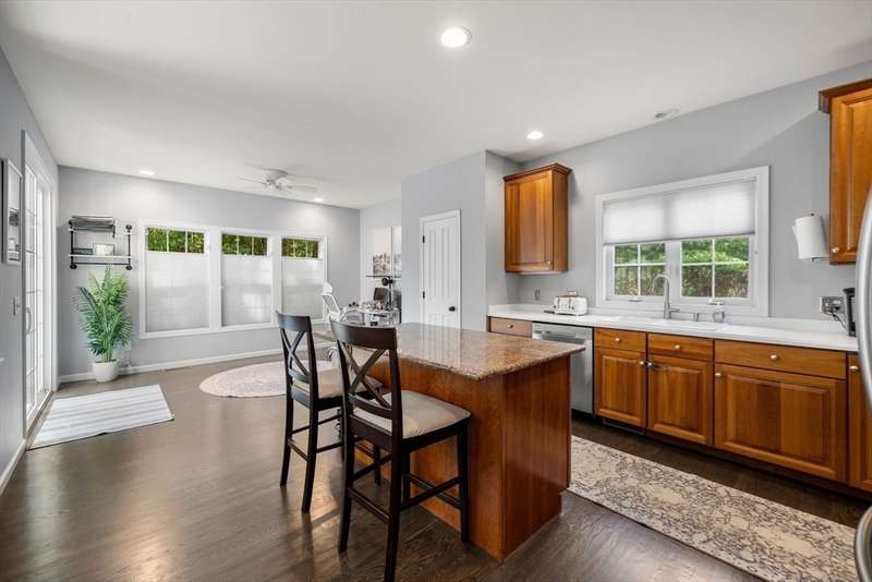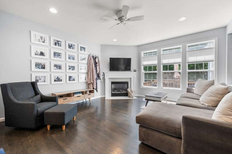 SEE DISCLOSURE FOR CLOSING COST CREDIT. Beautifully updated end unit townhome w/ 3 finished levels and lots of space to fit the family (almost 3,200 sq ft). Wonderful open floor plan (w/ high ceilings) features a dining room open to living room w/ gas fireplace and kitchen w/ center island and newer appliances. This unit also has a rear extension for an eat in kitchen. First floor laundry room/mudroom, 2 car garage, freshly painted interior (w/ lots of wainscoting) and newer HW floors throughout the 1st floor. There is a wood feature wall in the stairway for an upgraded look. Oversized primary suite has room for an exercise/sitting area or office and his and hers closets! There is a second bedroom and bath on the 2nd floor as well. The finished lower level offers 2-3 additional flex rooms- could be used as a a bedroom/media room/office, etc PLUS loads of storage! Other updates include: furnace, AC compressor, rear slider door (Pella), black hardware on doors/hinges.