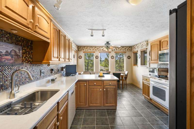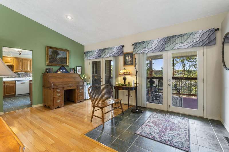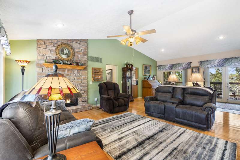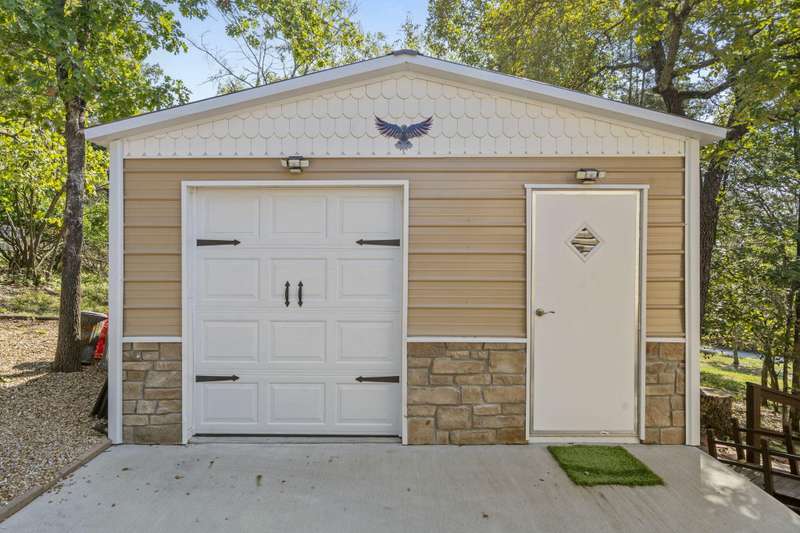 You will look a long time to find a nicer Home. It has been taking care of with love. Very Nice 4 bedroom 3 bath home that has a 16x20 outbuilding, Great room has high ceiling and a fireplace with a Blower. The great room also has room for a dining table. Beautiful hardwood floor. Screen in porch. New Carpet install 2018. In the Kitchen the GE Refrigerator and the Microwave were installed in 2019. Hot water heater install in 2018. In the lower level you will find the fourth bedroom with a Armoire that will stay with the home. In the Storm Shelter room the Safe will stay.You will see a small door that you can open to see the crawl space where the Maytag Furnace and The Ruud hot water tank. Oversized 2 car Garage 28x 28. You have a dog this home has a nice place for your dog outside. This home is only minutes to shopping in Kimberling City or Branson West. You will also just a few minutes to The Lake and the Kimberling City Marine where you can launch your boat. It has a small winter view. Branson is just a few minutes away with all it has to offer. COME AND TAKE A LOOK AT THIS NICE HOME!!