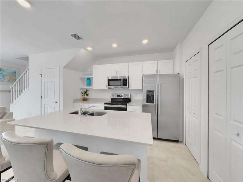 RARE BUYING OPPORTUNITY! BEAUTIFUL TOWNHOME W/GORGEOUS LAKE VIEW! Bennett floor plan by Lennar feat. 3 bedrooms, 2.5 bathrooms and 1-car attached garage. Located in the popular Townhome section of the highly sought-after Portico community in sunny Fort Myers, FL. One of the Best Units, w/lake view, western rear exposure and the shortest walk to the community amenities center and pool! Smart Home w/plenty of room on two floors. First floor with open living concept and tile flooring throughout. The heart of the home is the great room w/tall glass sliding doors that flood the space with natural light. The kitchen is a chef's dream, feat. a large island, quartz countertops, white cabinetry, stainless-steel appliances + walk-in pantry. Enjoy preparing meals while still being part of the action, perfect for both daily living and entertaining. Also located on the first floor are a powder bath and a large storage space under the stairs to the second floor. All bedrooms and other bathrooms are on the second floor. The owner's suite is a true retreat, offering stunning lake views through two windows, complete with a large walk-in closet and ensuite bathroom feat. dual vanities + large walk-in shower. Two additional bedrooms provide ample space for family and guests, while the second full bathroom on this floor ensures convenience and privacy for all. Furniture is negotiable. Move right in and enjoy your very own piece of Florida paradise! Surrounded by the natural beauty of SW Florida, PORTICO is an access-controlled community w/Low HOA fees. Amenities include clubhouse, community pool, gym, yoga/exercise room, tennis, pickleball, basketball, play area + more. Pets, Fences/Patio Enclosures & LSVs permitted! Great location, short drive to I-75, shopping, dining & more!